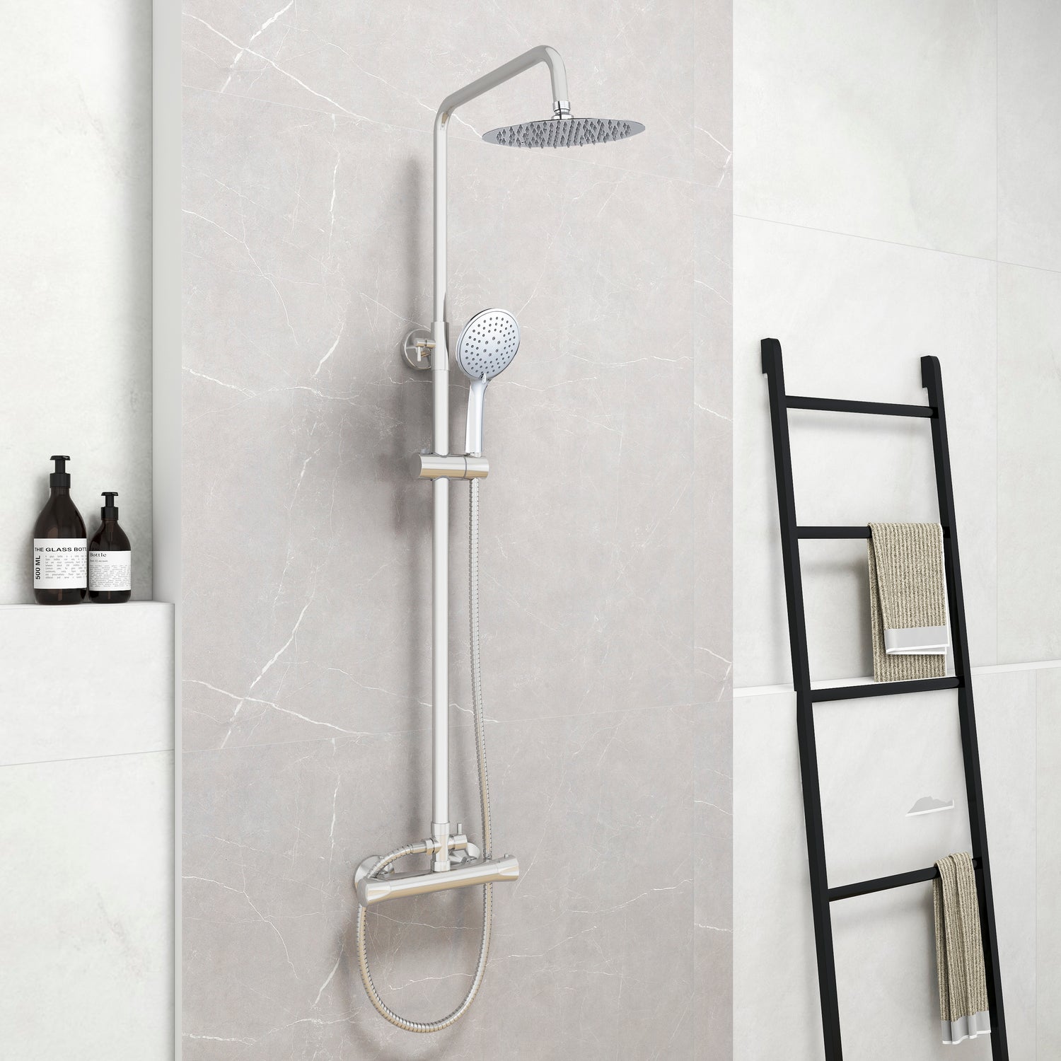 Colonne de douche thermostatique, ensemble de douche 2 fonctions, chromé avec pomme de douche 250 mm, hauteur réglable 76-118 cm