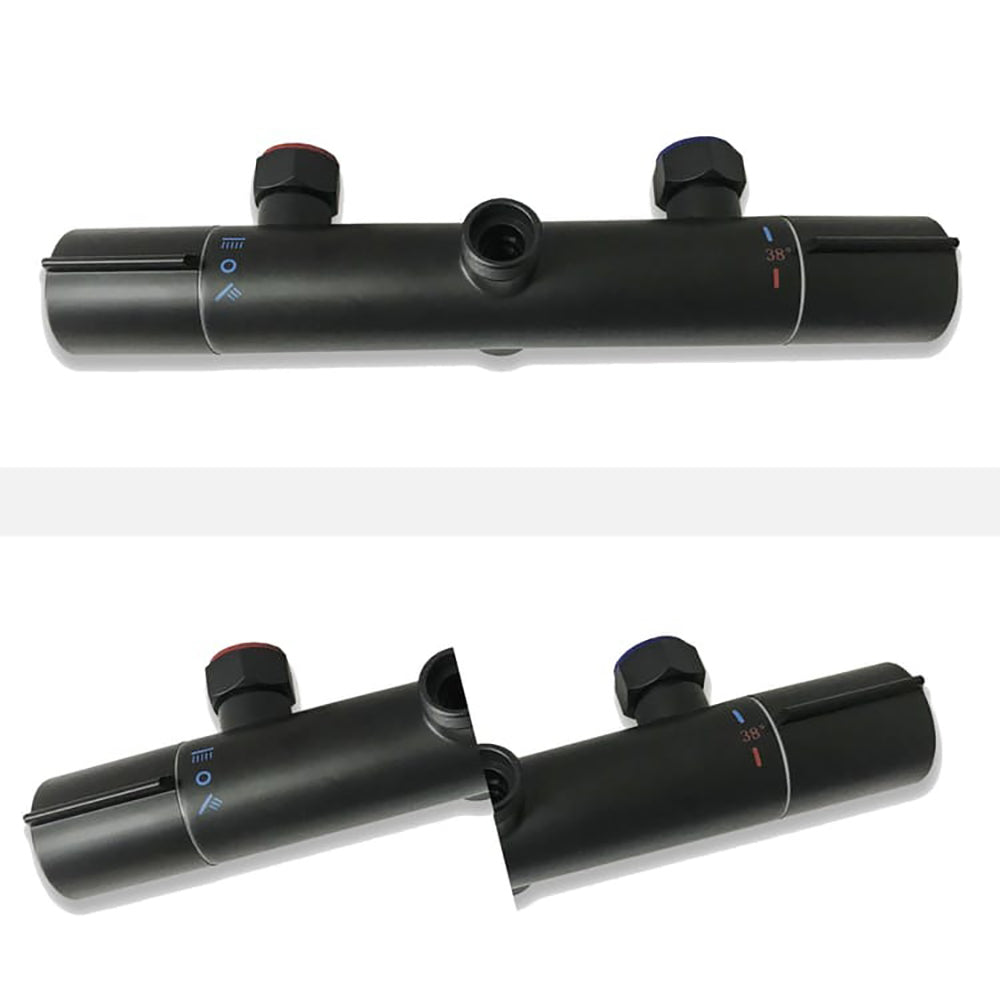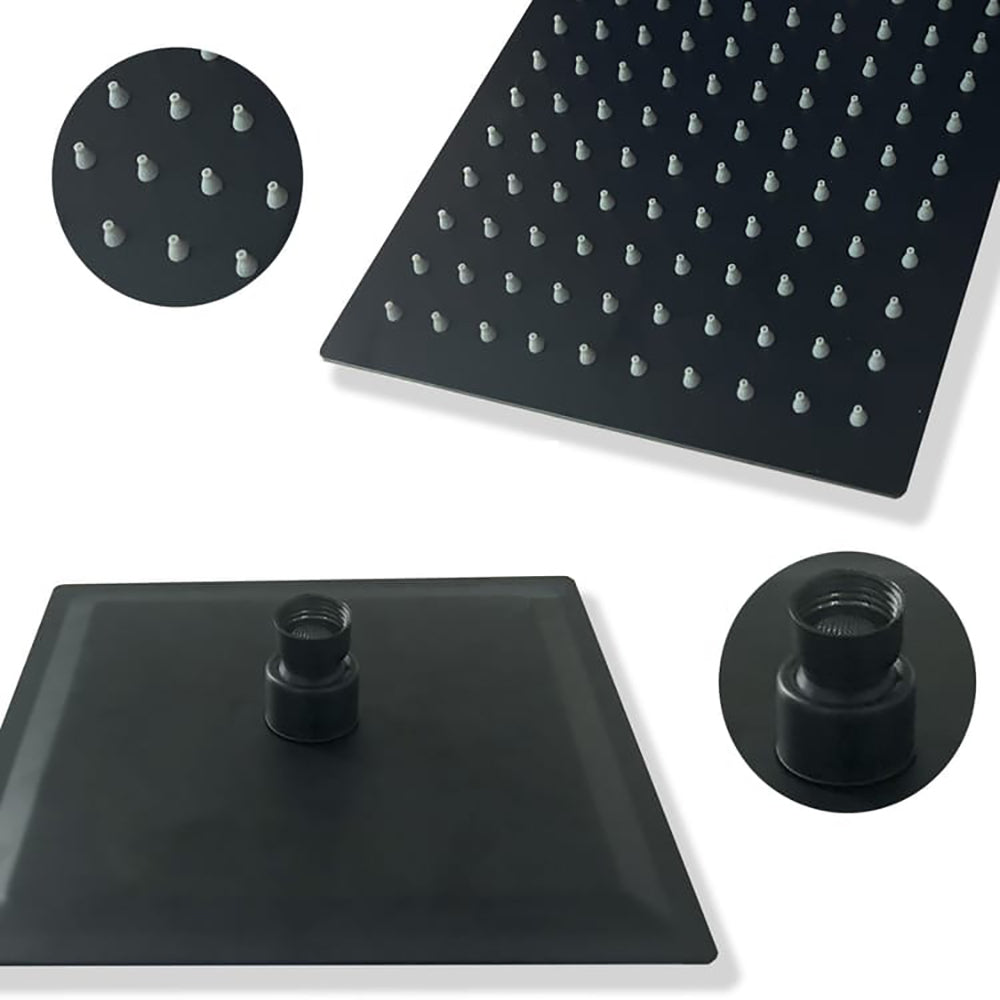 Ensemble de douche thermostatique Colonne de douche carrée noire avec mitigeur thermostatique et douchette ronde