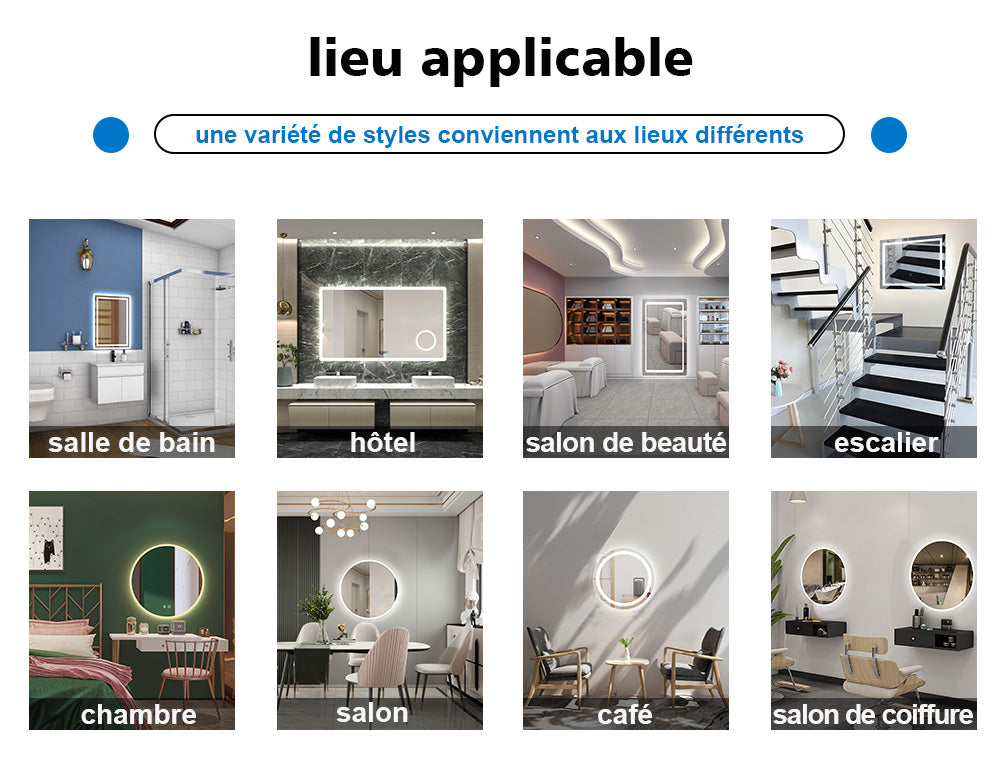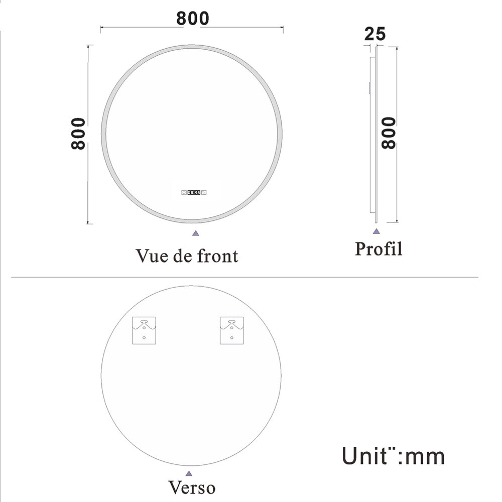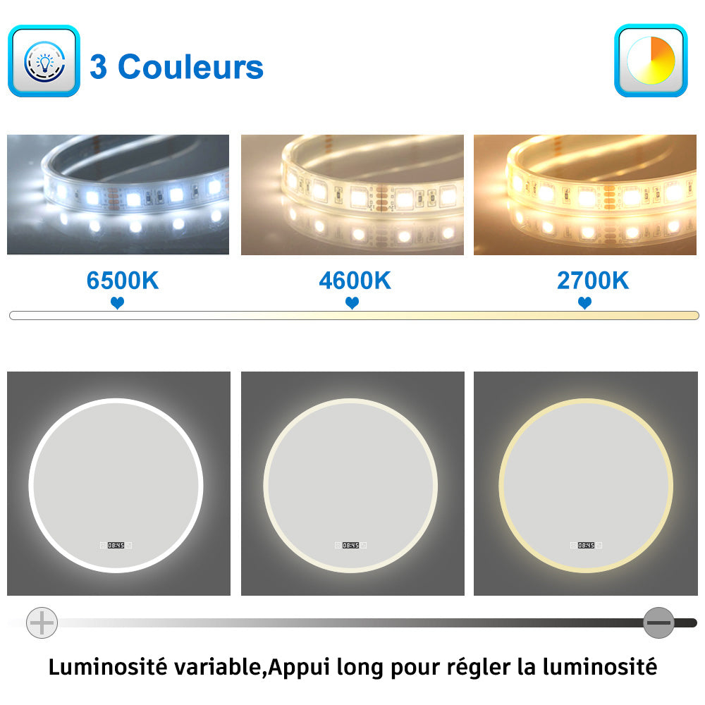 Interrupteur tactile- Vous n’aurez plus à traverser toute votre salle de bain dans le noir pour allumer la lumière du miroir. Nos miroirs se servent de diodes SMD 2835 générant une lumière plus intense.