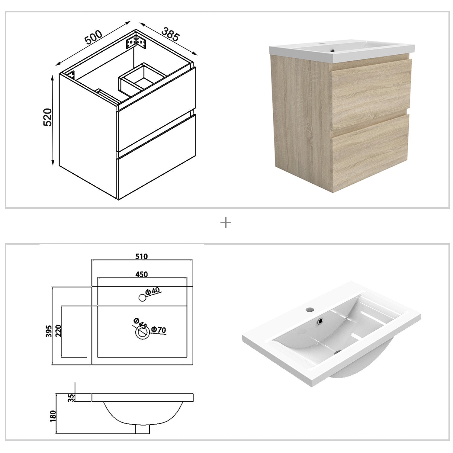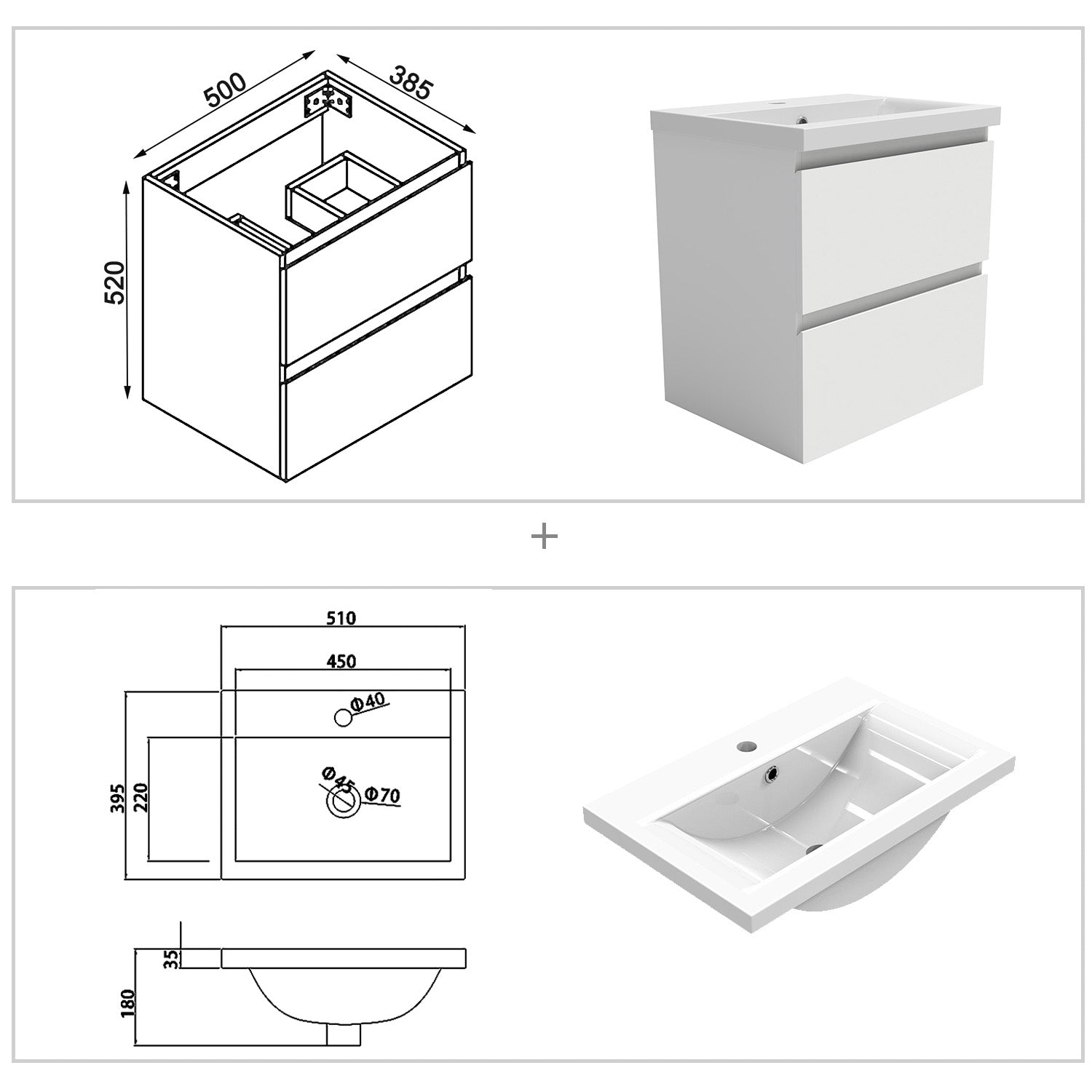 Ce meuble est conçue dans une volonté de design épuré (Robinetterie, vidage, siphon non inclus), classe de protection étanche IP44.