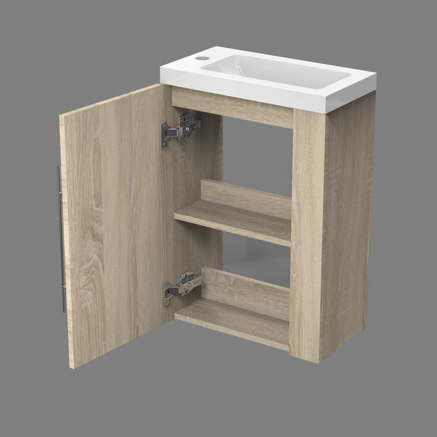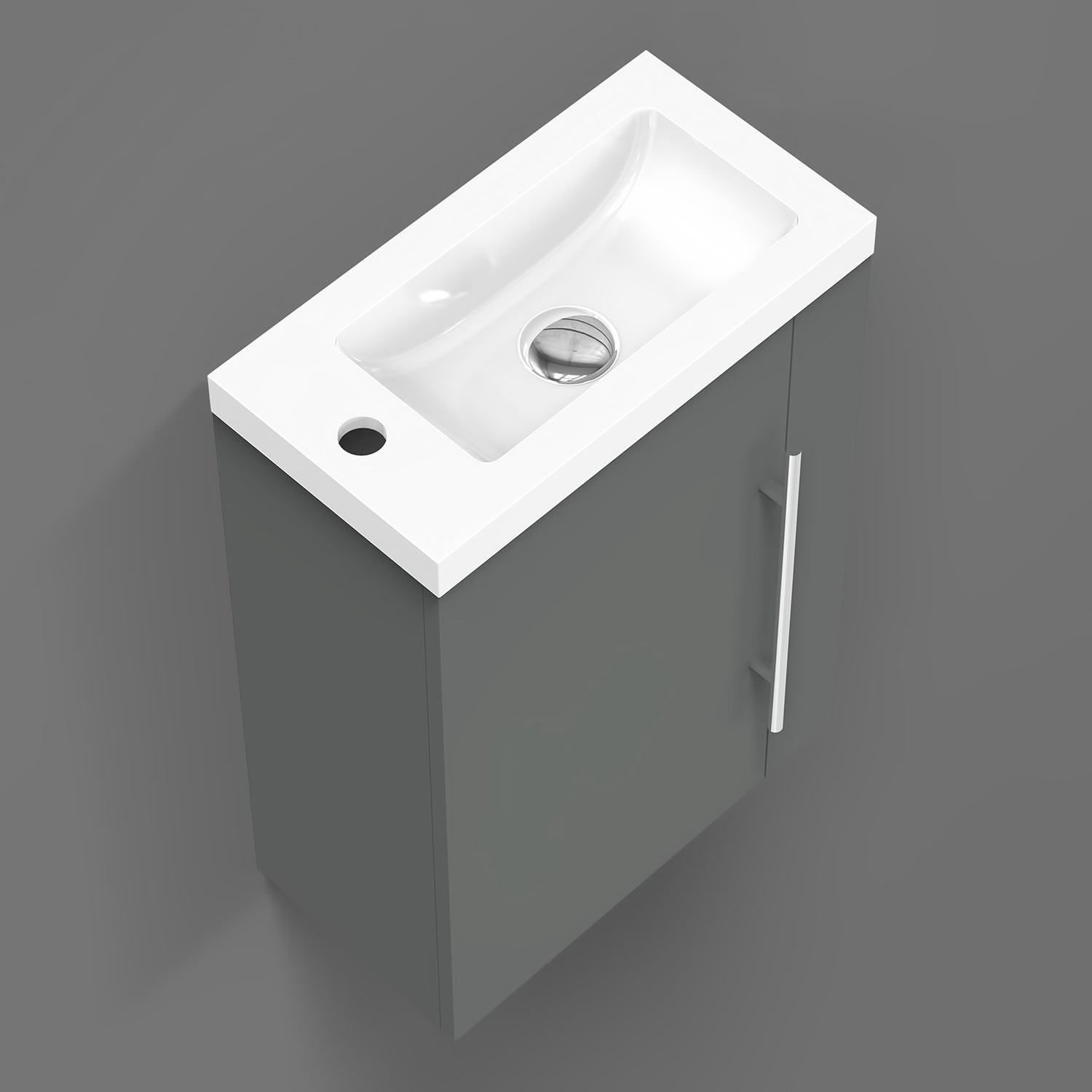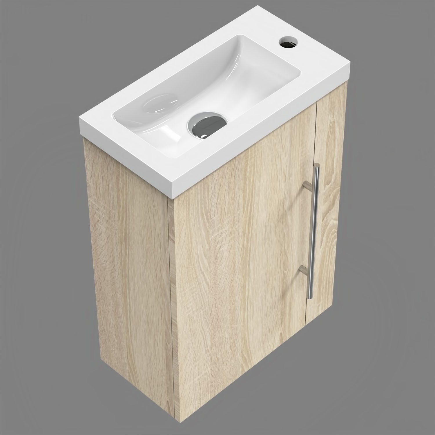 √ Meuble sous vasque - Style et design contemporain - 1 porte et 2 compartiments - À suspendre - Structure en MDF solide - Poignée et charnières en aluminium de première qualité, anti-empreinte et anti-corrosion pouvant être utilisée comme porte-serviette - Meuble complété par un système de fermeture douce, amortie et silencieuse Soft-closing.