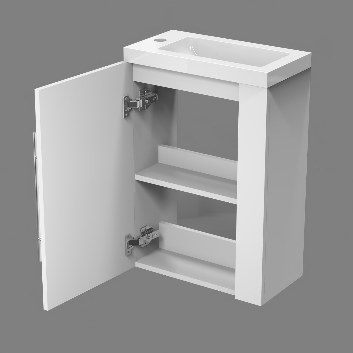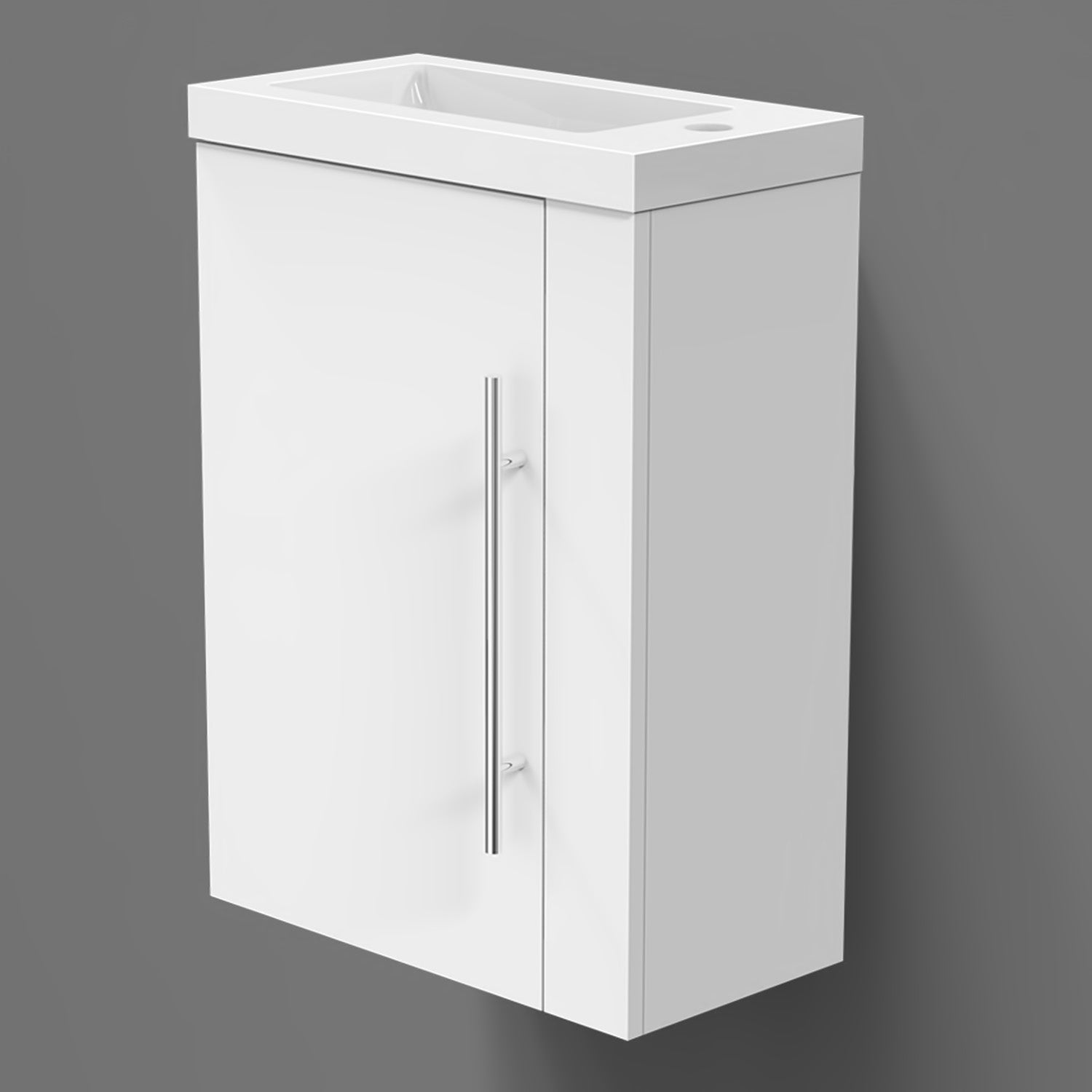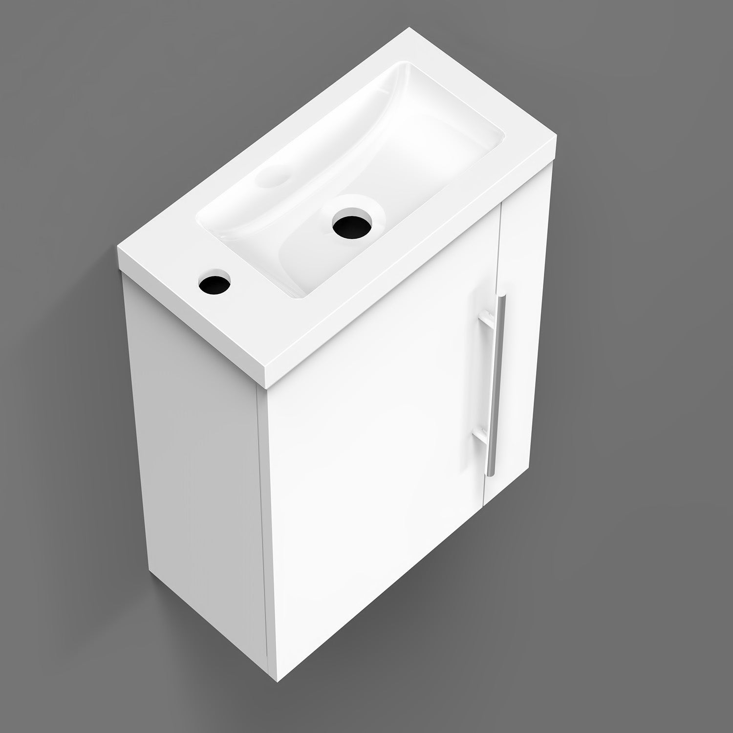 √ Meuble sous vasque - Style et design contemporain - 1 porte et 2 compartiments - À suspendre - Structure en MDF solide - Poignée et charnières en aluminium de première qualité, anti-empreinte et anti-corrosion pouvant être utilisée comme porte-serviette - Meuble complété par un système de fermeture douce, amortie et silencieuse Soft-closing.