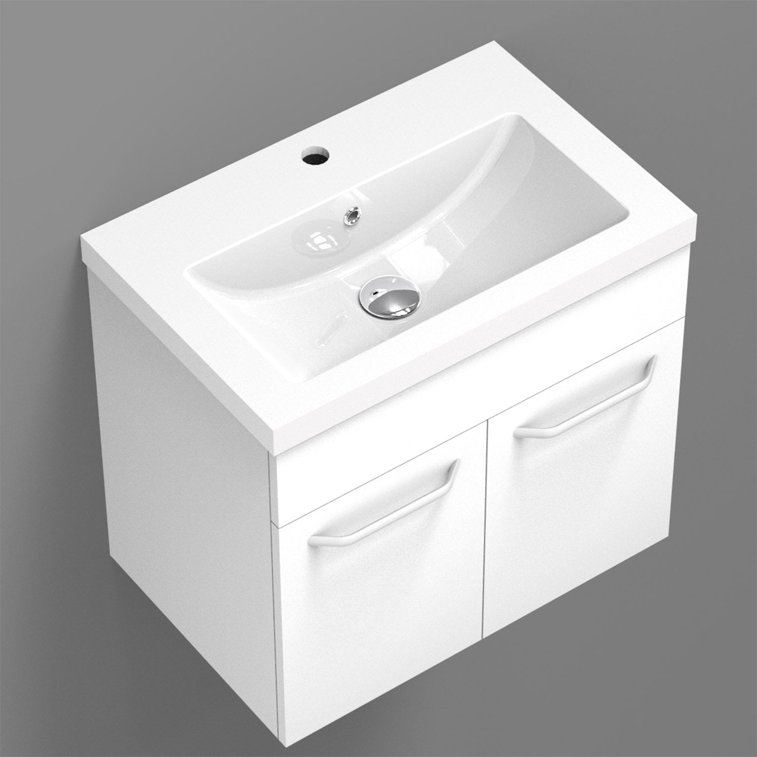 √ Meuble sous vasque pré découpé pour le passage de la tuyauterie - Style et design contemporain - 2 portes battantes - À suspendre - Structure en MDF solide - Poignées et charnières en aluminium de première qualité, anti-empreinte et anti-corrosion - Meuble complété par un système de fermeture douce, amortie et silencieuse Soft-closing.