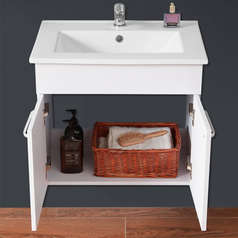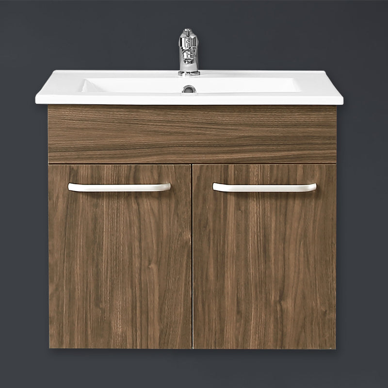 Meuble de salle de bain, sous vasque à suspendre, meuble de rangement MDF à 2 portes battantes 60cm, avec plan vasque intégré Blanc / Marron noix