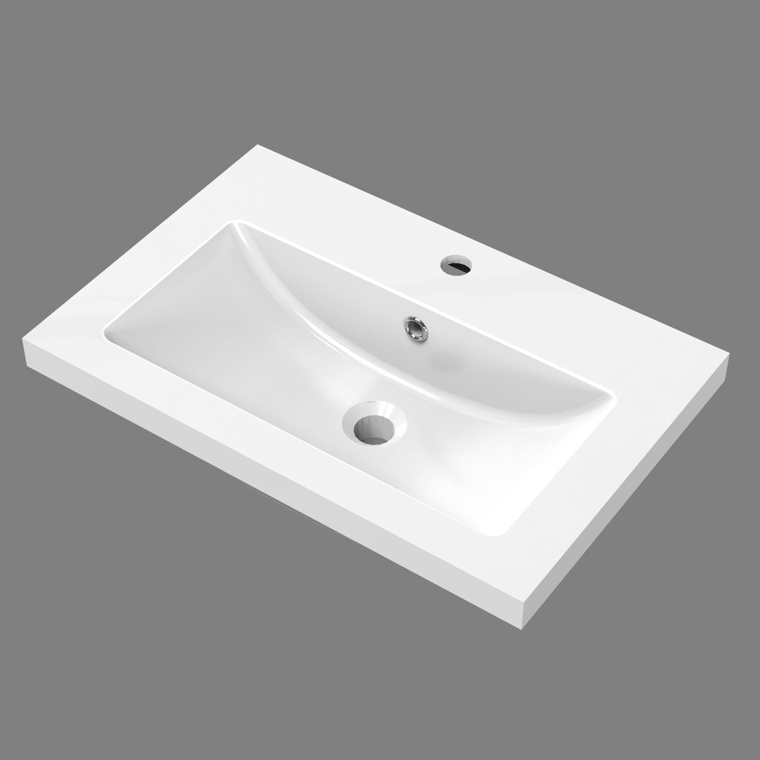 Vasque en céramique/résine et poudre de pierre: Blanc Mat - design minimaliste - solide et agréable au toucher, avec trop-plein.