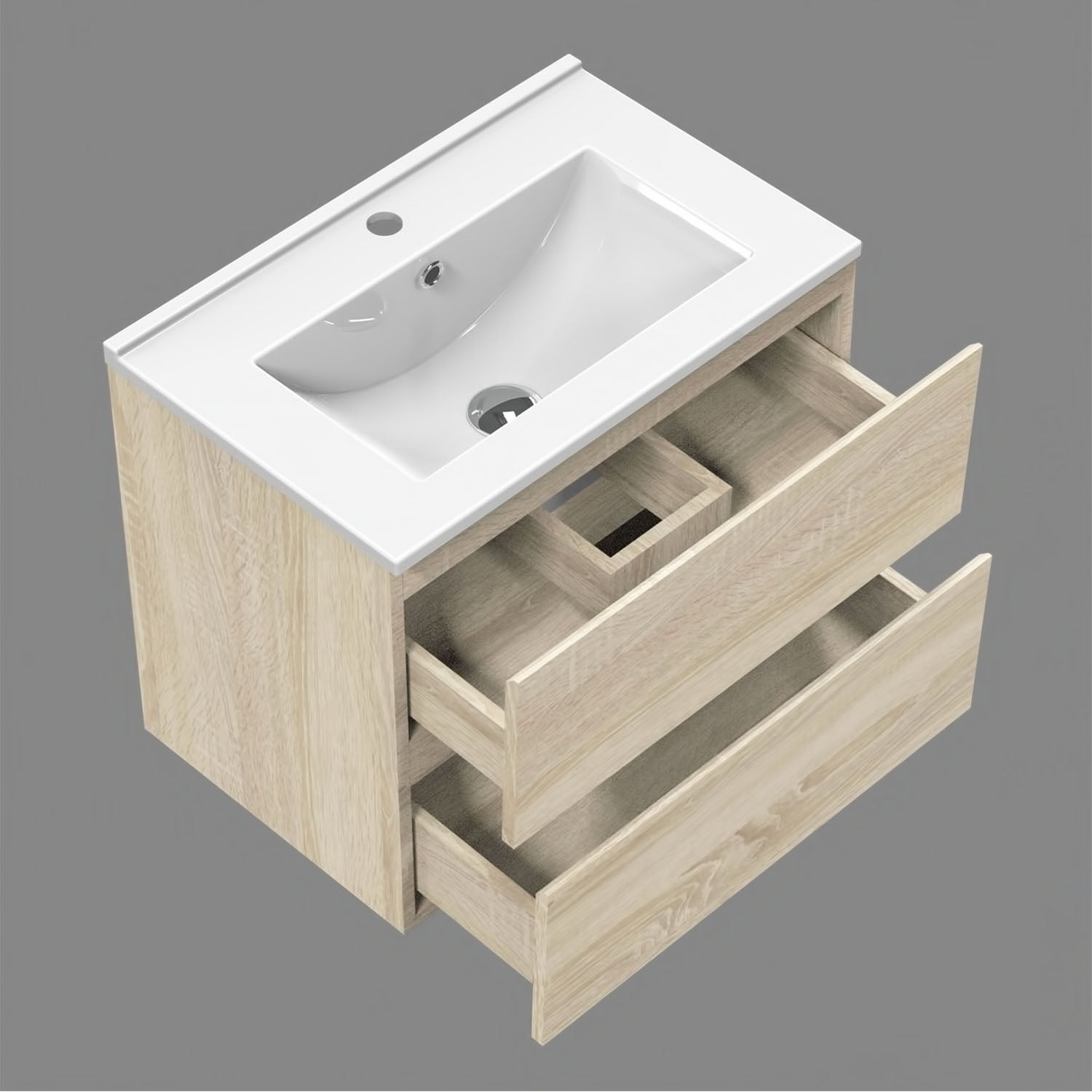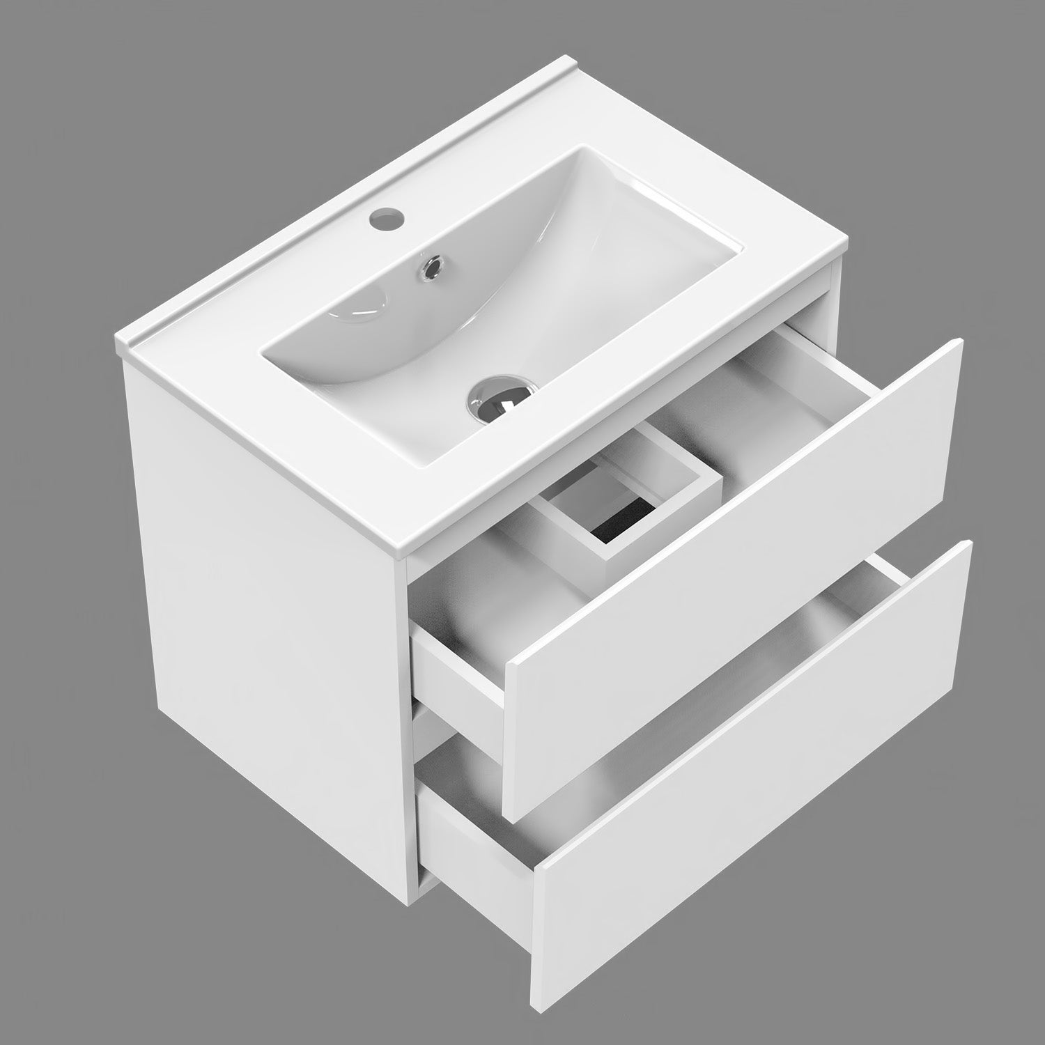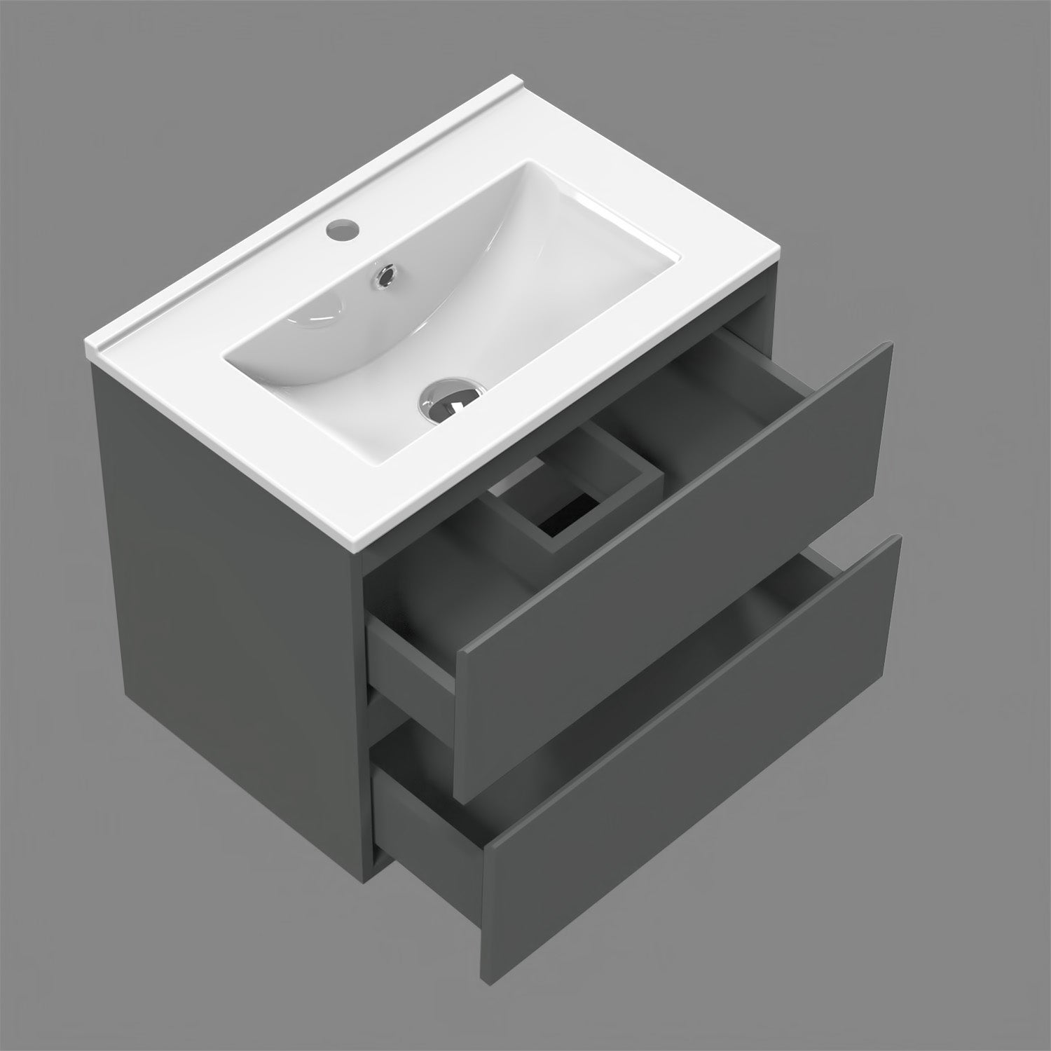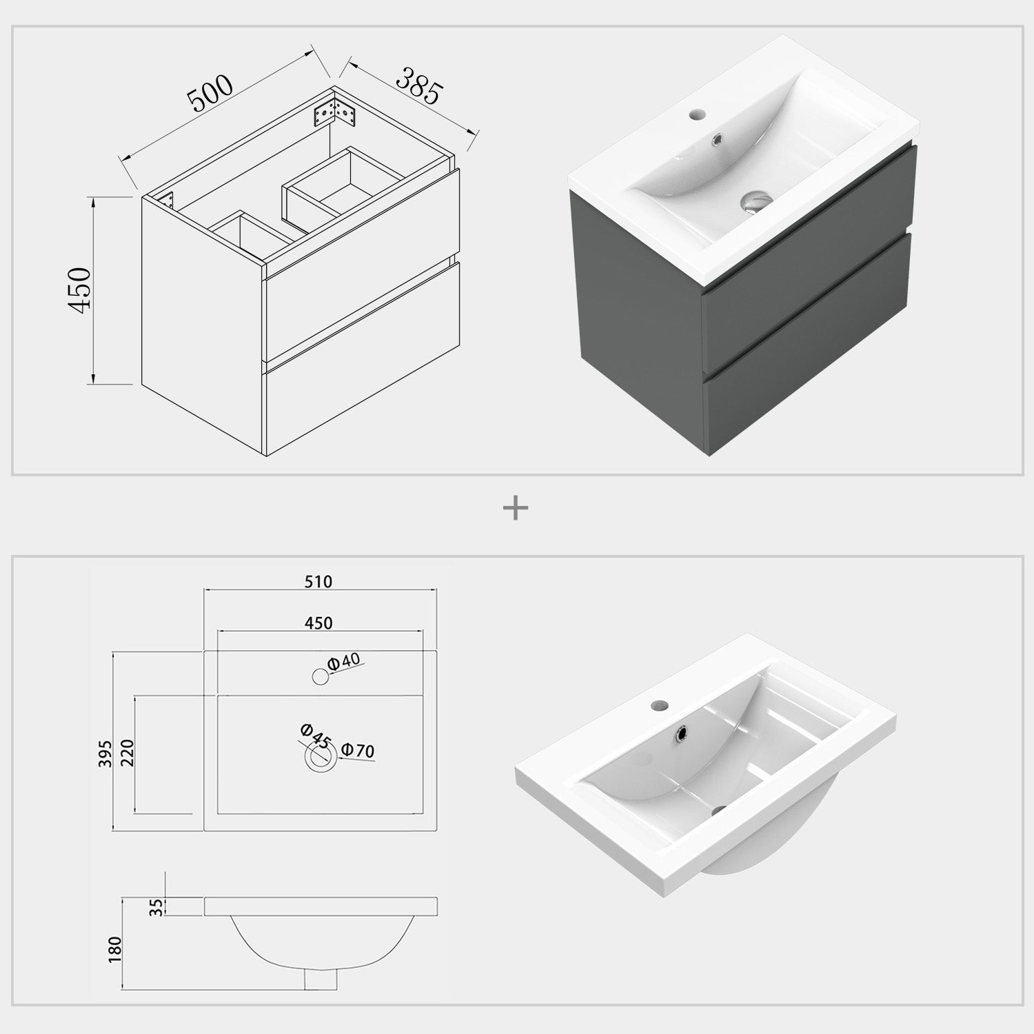 Meuble de salle de bain, sous vasque à suspendre, meuble de rangement MDF à tiroirs avec vasque intégrée, poignée incorporée 50cm 60cm