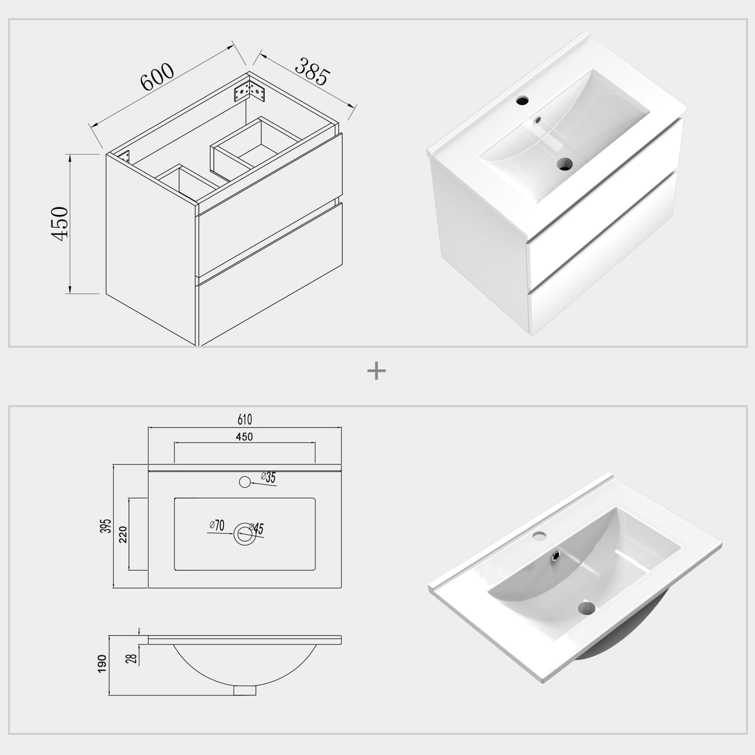 √ Meuble de qualité supérieure: en MDF robuste, lavabo céramique avec trop-plein.
