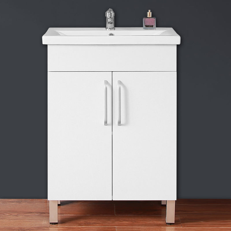 Meuble de salle de bain, sous vasque sur pieds, meuble de rangement MDF 60cm, avec plan vasque intégré Blanc / Marron noix