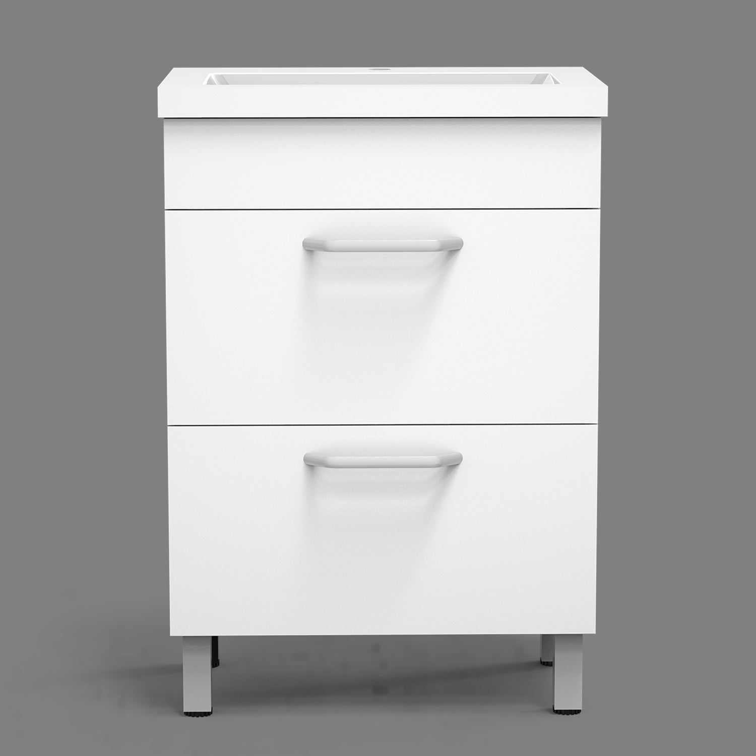 Meuble de salle de bain, sous vasque sur pieds, meuble de rangement MDF 60cm, avec plan vasque intégré Blanc / Marron noix