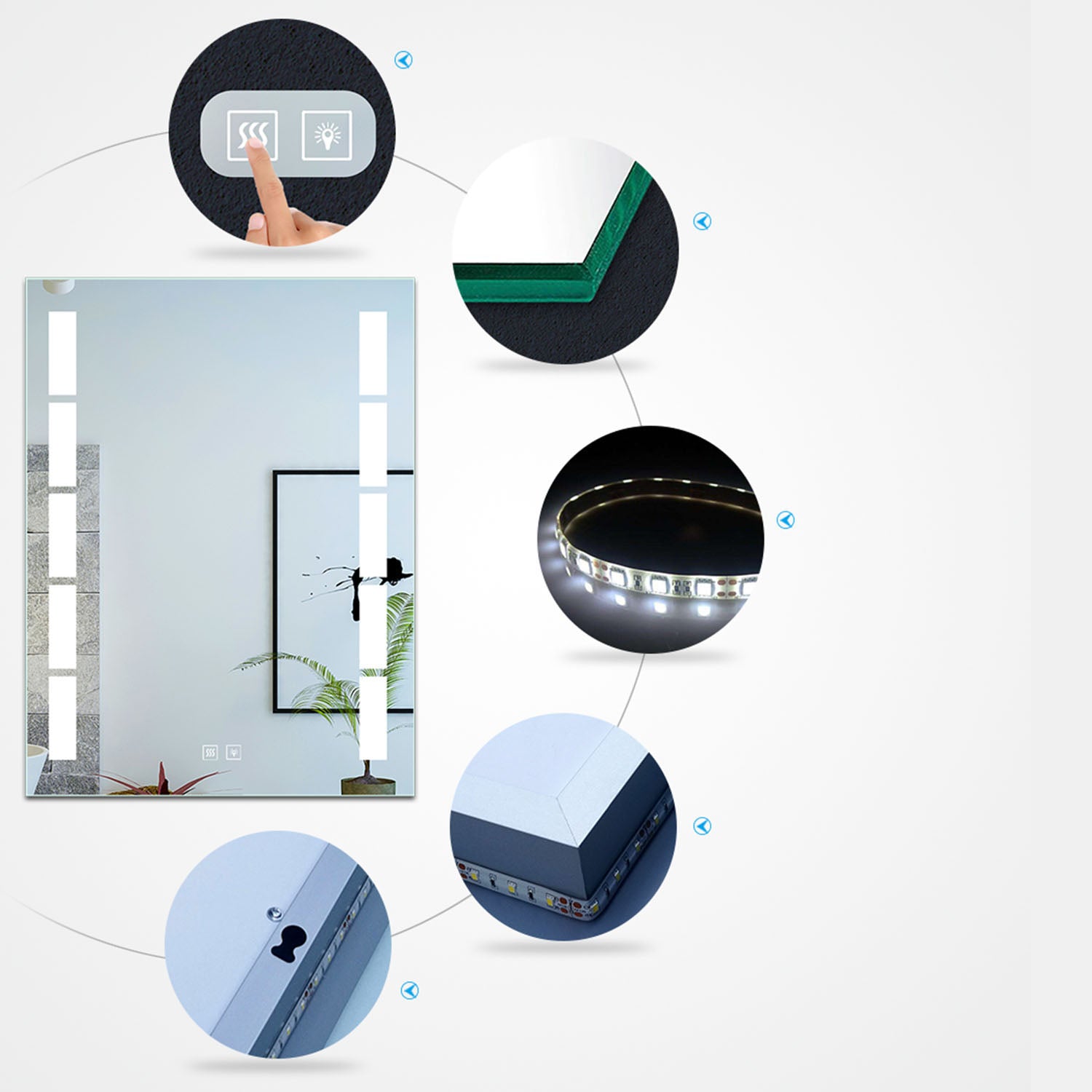 • Cadre en aluminium de qualité supérieure, avec anti-empreinte et anti-corrosion - Epaisseur du verre: 5mm - Tension: 220-240V - Température de couleur:6000K Lumière blanche - Durée de vie des LEDs: 5000heures -Type de led SMD: SMD 2835(La led SMD 2835 est la plus efficiente. Elle contient un dissipateur thermique plus grand et génère une lumière plus intense)