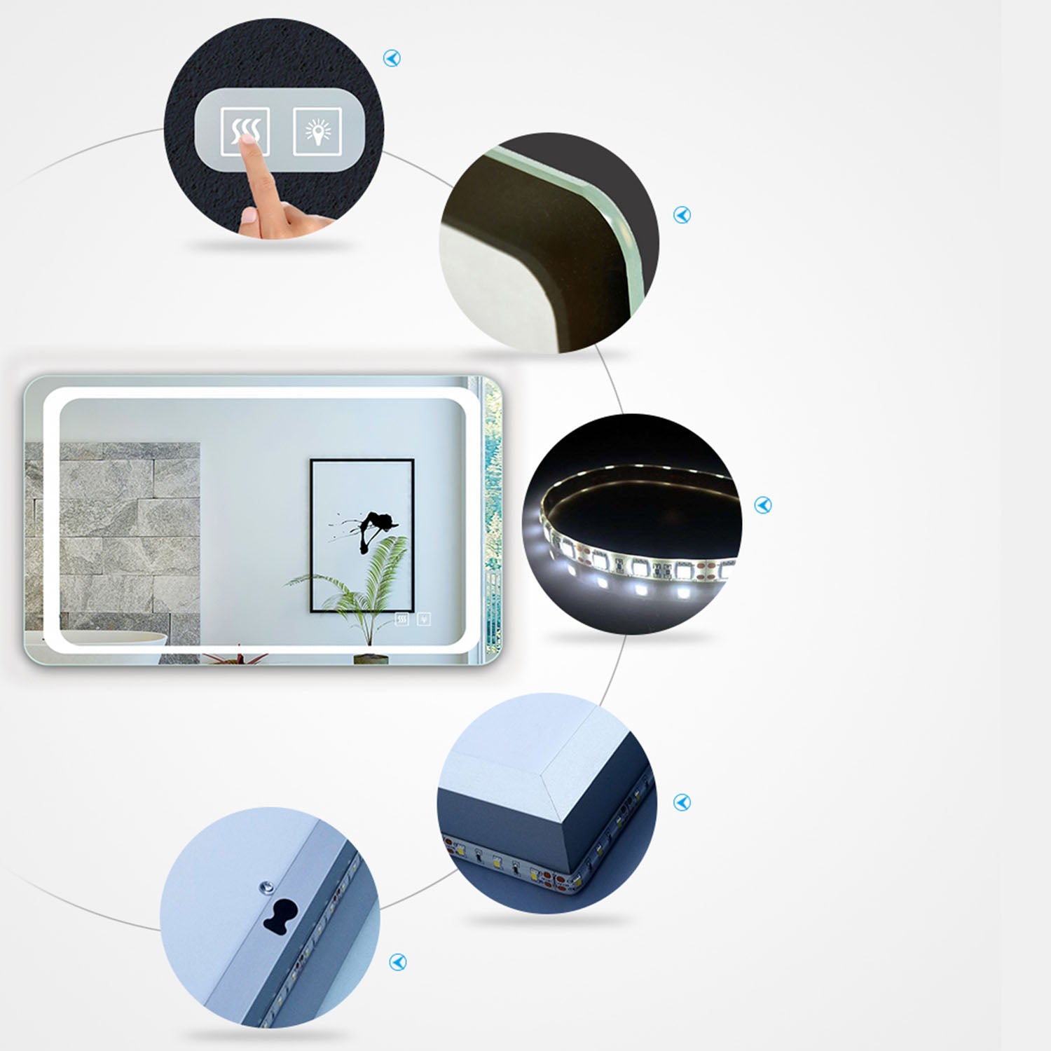 - Commutateurs: 2 touches tactiles pour un contrôle séparé de la fonction LED et anti-buée avec la norme IP44, étanche à l'eau et à la poussière - possède un discret témoin lumineux, permettant de les retrouver beaucoup plus facilement dans le noir, ce qui constitue donc un atout pour votre sécurité.