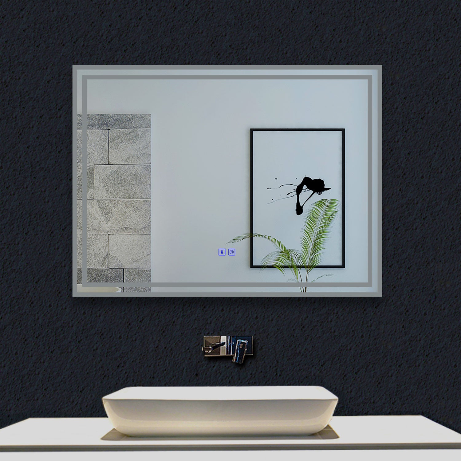 Miroir rectangulaire tactile Bluetooth simple tricolore avec antibuée.