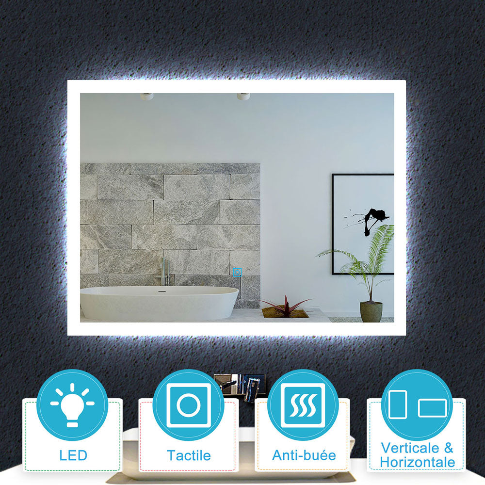 - Commutateurs: 1 touche tactile pour un contrôle simultané de la fonction LED et anti-buée avec la norme IP44, étanche à l'eau et à la poussière - possède un discret témoin lumineux, permettant de les retrouver beaucoup plus facilement dans le noir, ce qui constitue donc un atout pour votre sécurité.