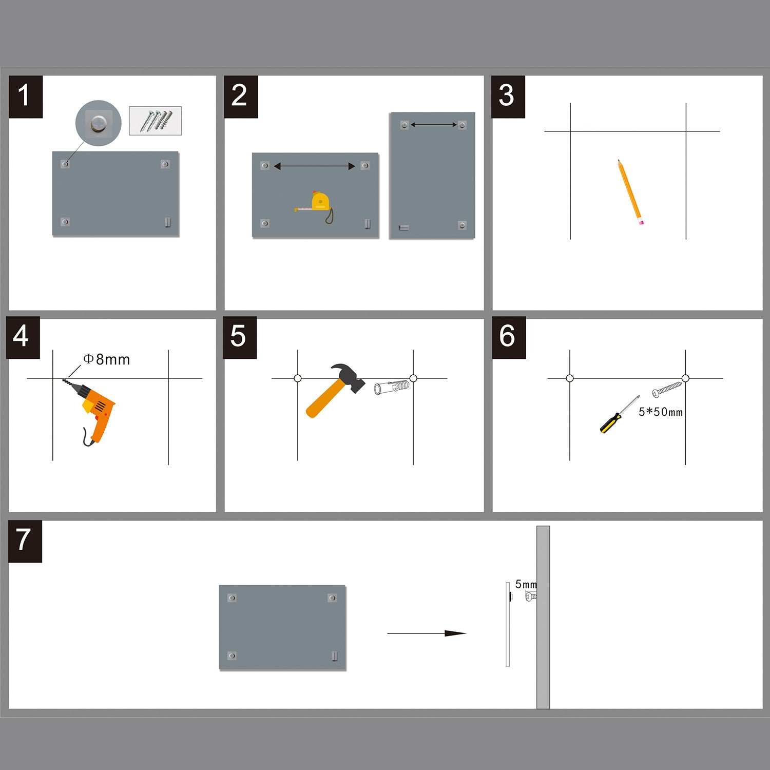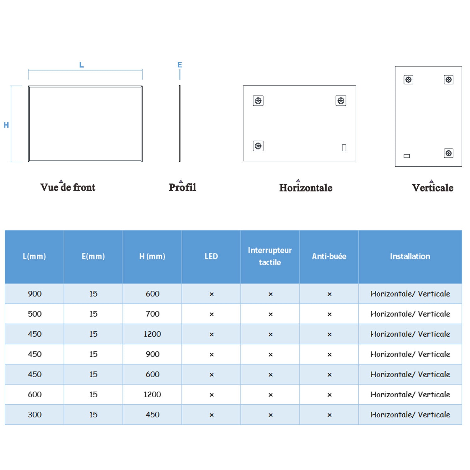 Installation murale facile: Suspension horizontale / verticale, tous les éléments nécessaires pour le montage du miroir se trouvent dans le kit avec une instruction.