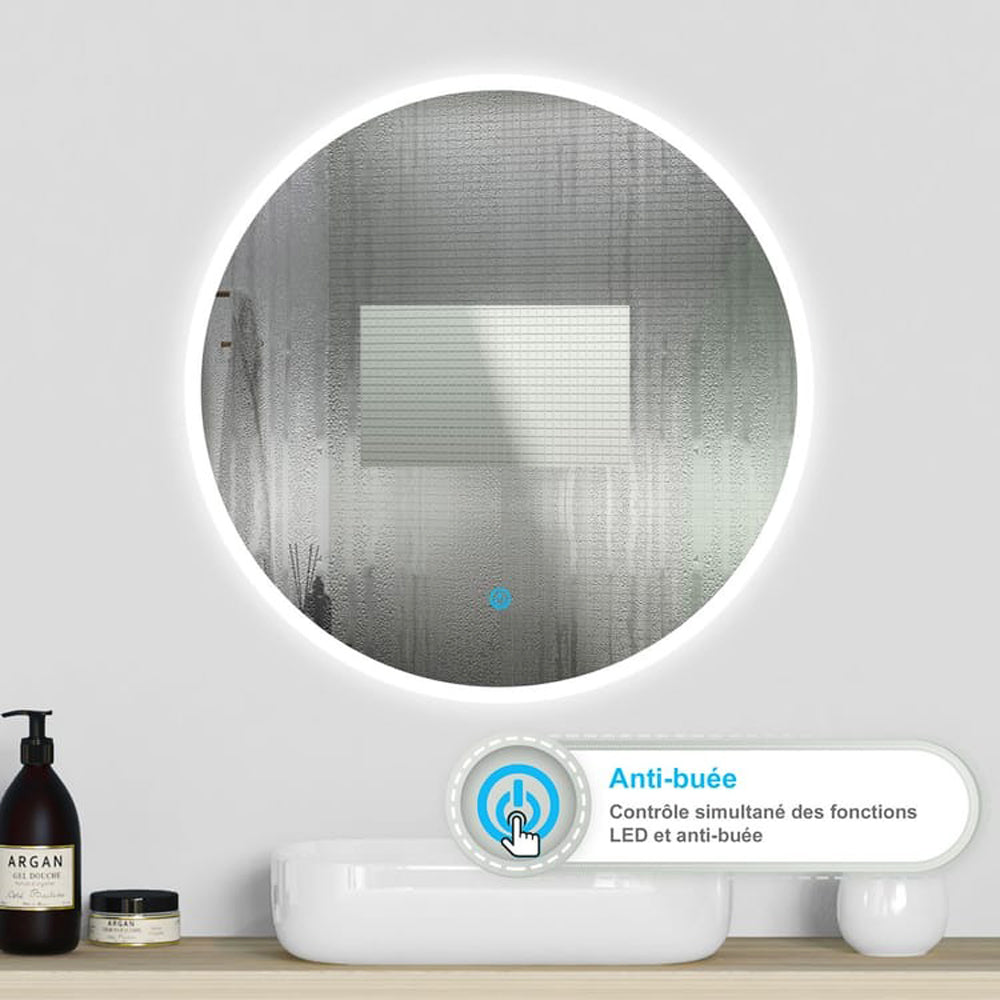 Miroir lumineux rond, Miroir LED avec antibuée