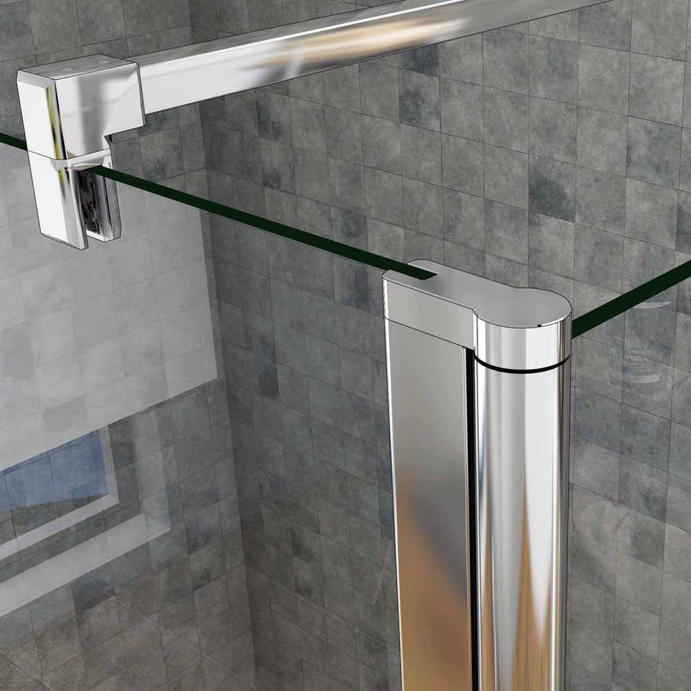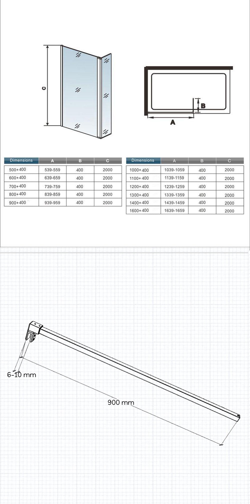 • Dimension: 50-160 x 200cm et un retour de 40x200cm, verre en 8mm empêche complètement l’apparition de taches de calcaire et conséquemment l’entretien des vitres serait très facile à faire.