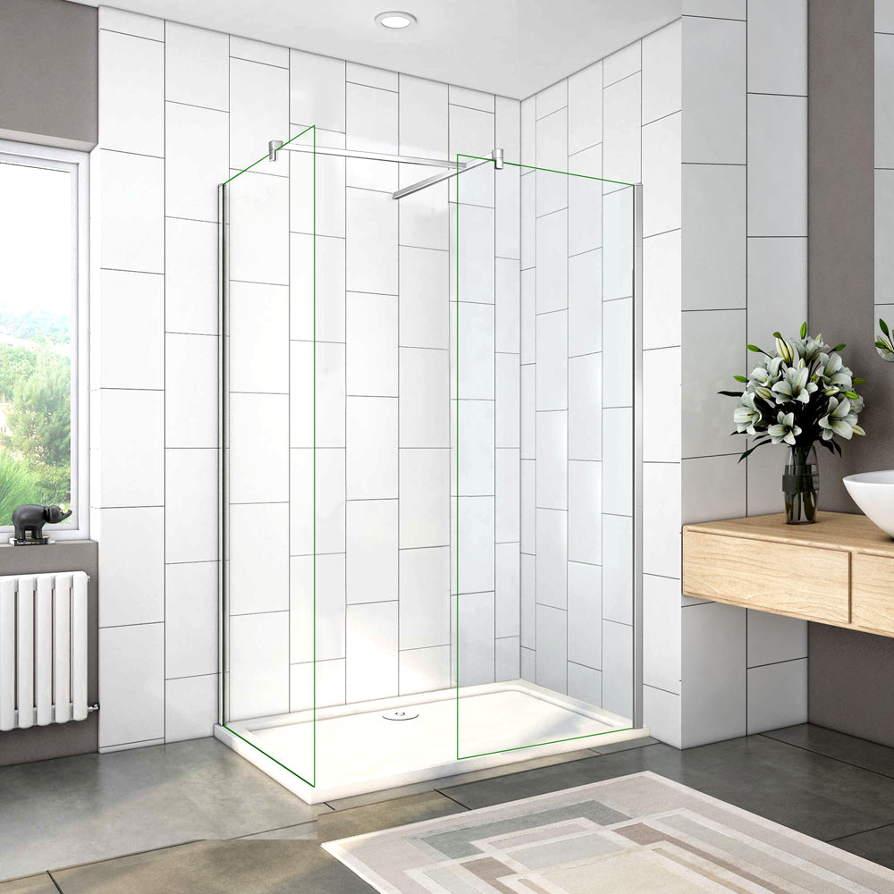 • Dimension de parois : ( 90x200cm ) + ( 50/60/70/80/90 x200cm ) ,Verre sécurité claire 8mm avec le traitement d'anticalcaire.
