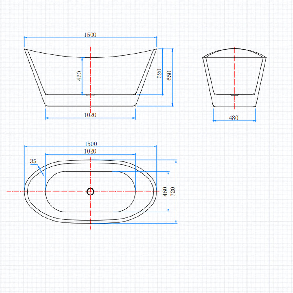 Ocean Baignoire îlot ovale luxueuse 150x72cm : Blanc brillant, acrylique easyclean et système anti-débordement
