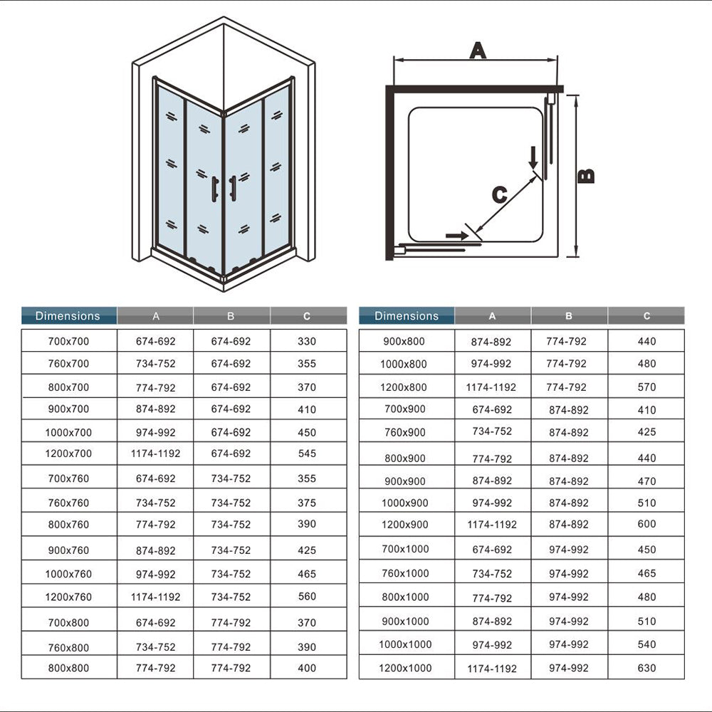 • Type: Cabine de douche carrée, installation en angle,montage réversible gauche ou droite,Dimension: 70-120 x 70-120 x 185cm veuillez trouver les dimensions extension sur le schéma