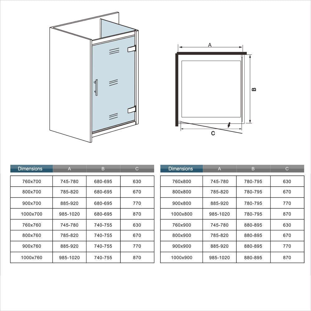 • Type: Cabine de douche, installation en angle, montage réversible gauche ou droite,Dimension: 80/90/100(porte) x 70/80/90(paroi) x 185cm veuillez trouver les dimensions extension sur le schéma.