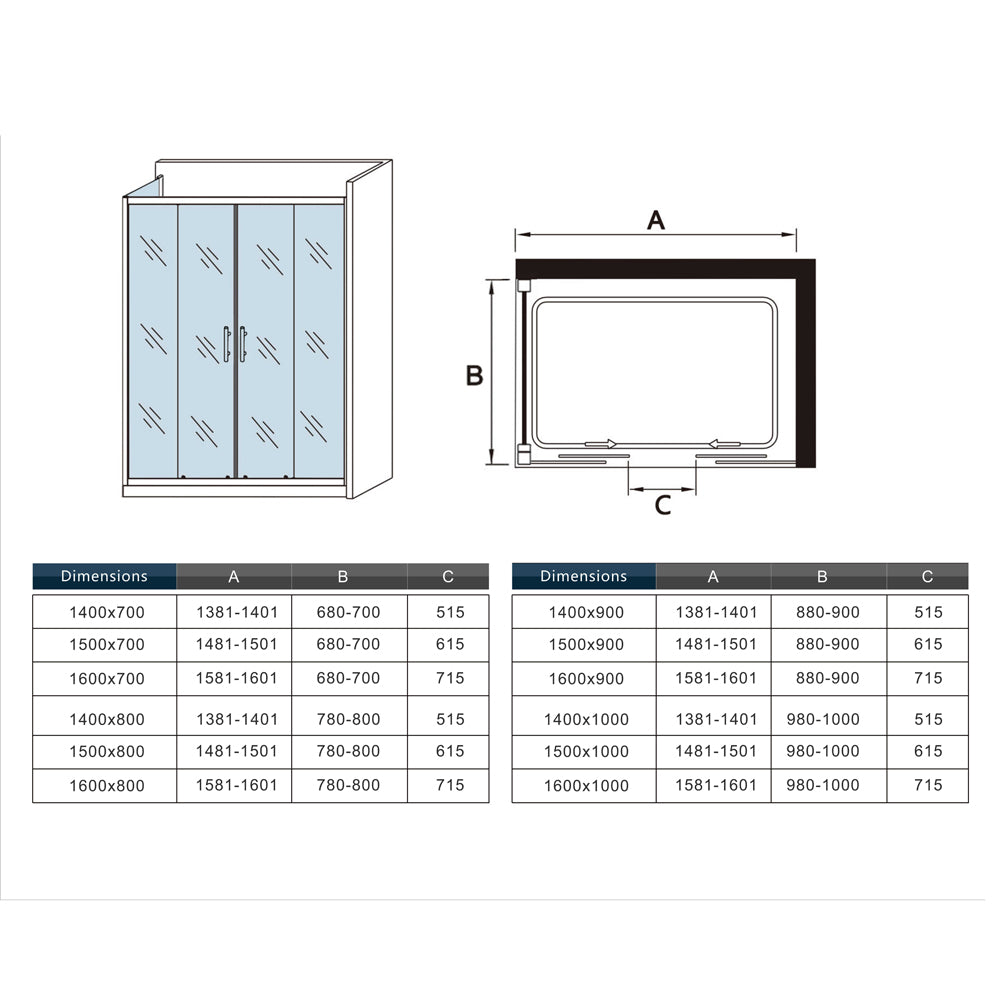 • Type: Cabine de douche, installation en angle,montage réversible gauche ou droite,Dimension: 120/140/160(porte) x 70/80/90/100(paroi) x 190cm veuillez trouver les dimensions extension sur le schéma