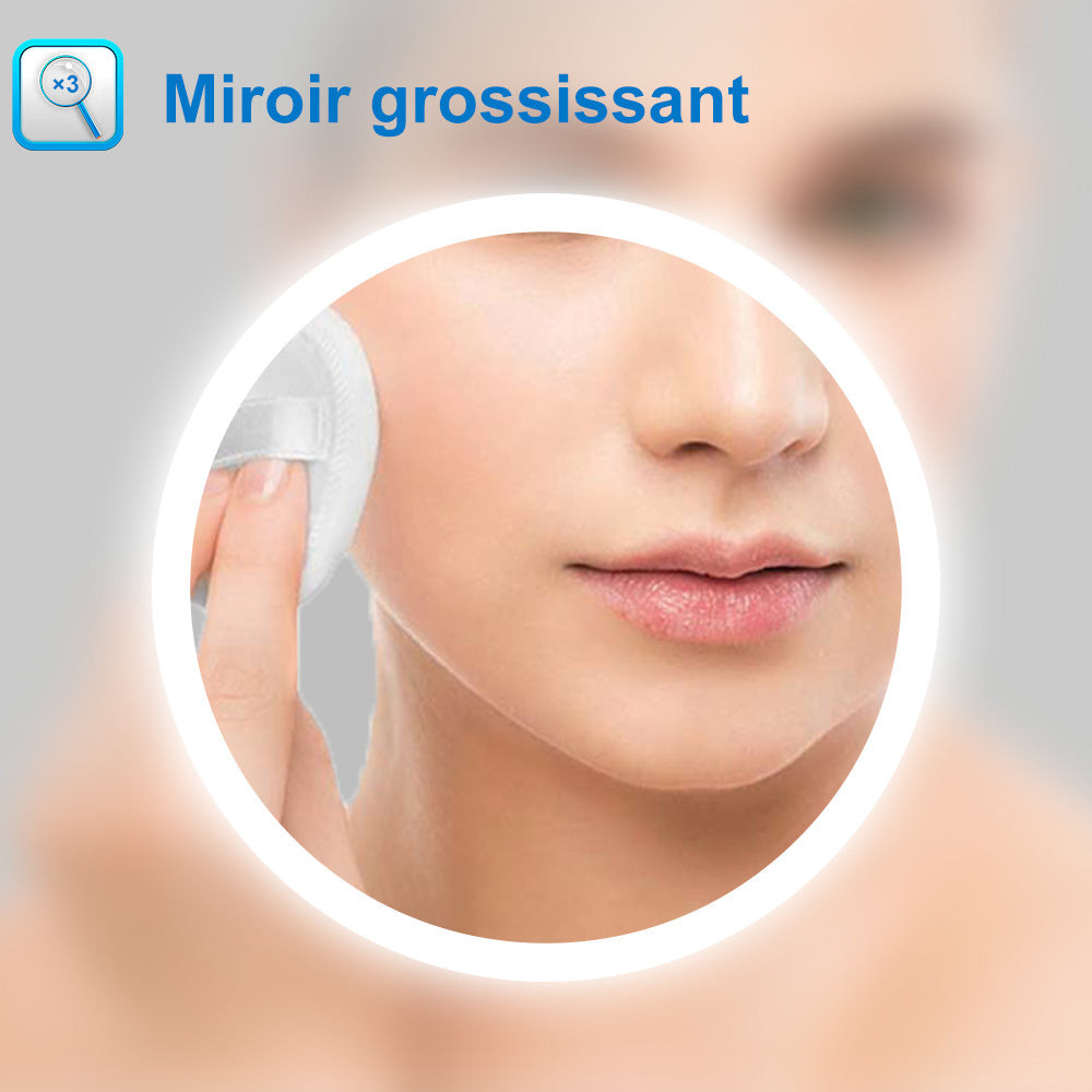 - 【Miroir grossissant x3】- La partie à grossissement du miroir vous permet de bien voir vos pores et vos détails du visage quand vous en avez besoin,ce miroir répond parfaitement à vos besoins quotidiens