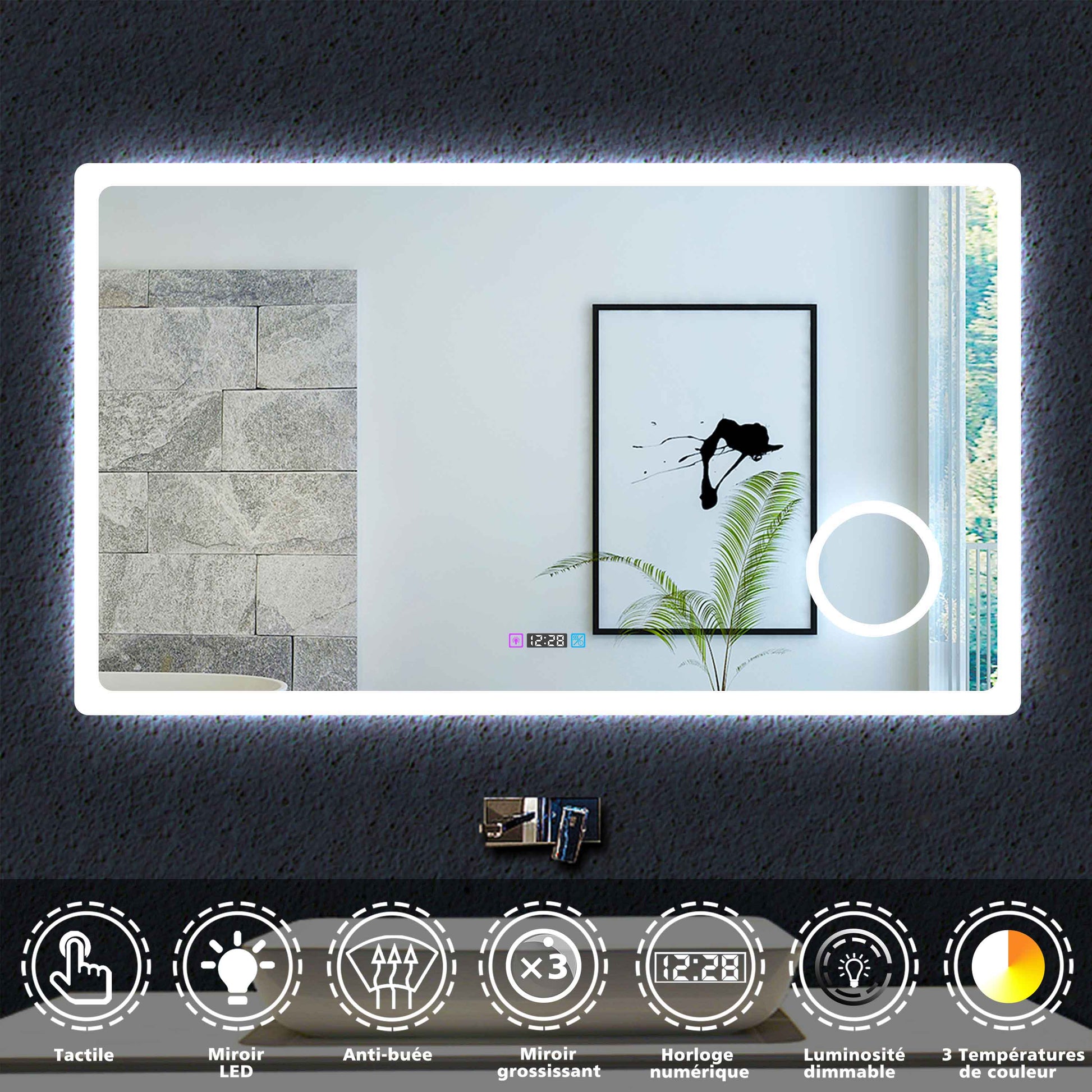 - 【COULEUR RÉGLABLE】- Une couleur LED selon la circonstance et vos envies: vous pouvez balancer du blanc chaud au blanc froid, du blanc froid au blanc neutre avec simple effleurement. Nos miroirs se servent de diodes SMD 2835 générant une lumière plus intense