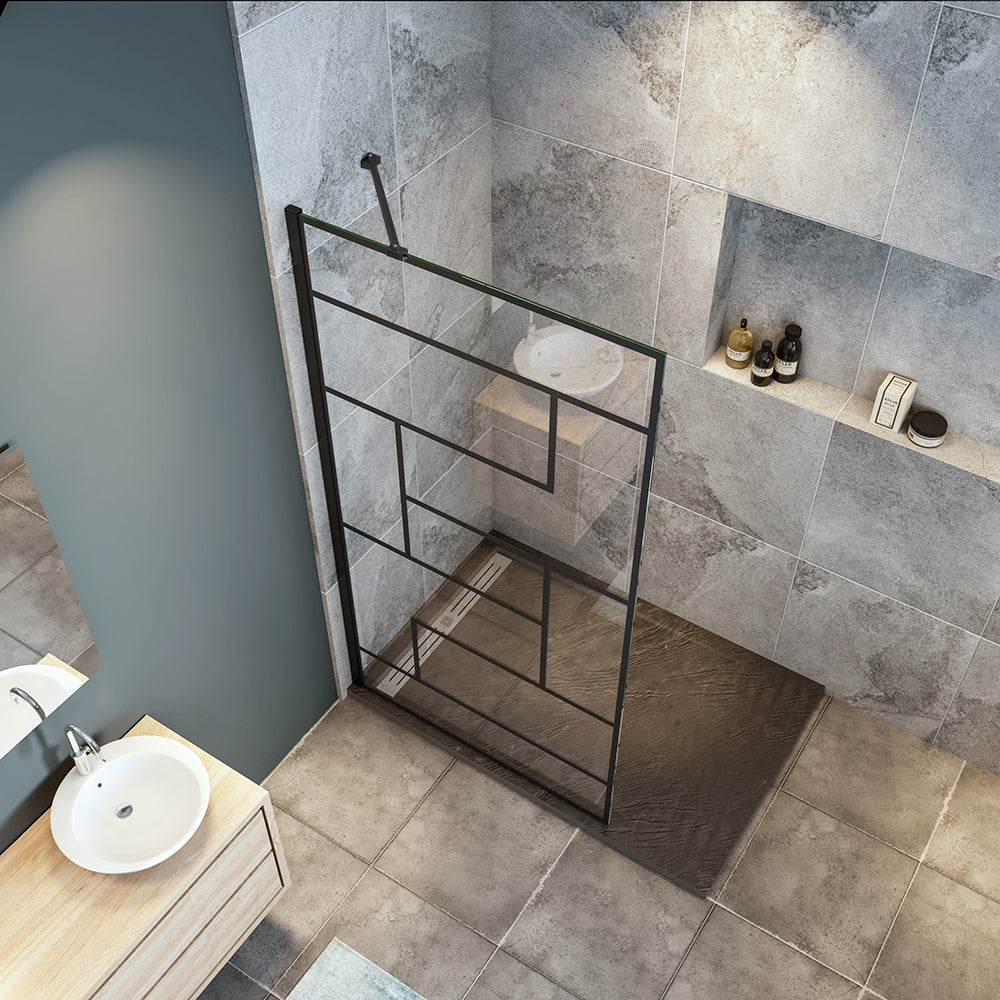 Océan paroi de douche noire 70-100x200cm sérigraphie noire en verre anticalcaire livrée avec une barre standard 45cm