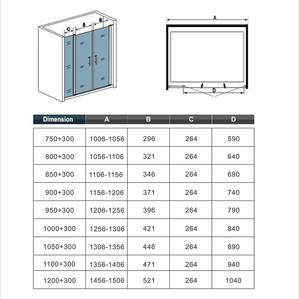 • Type: Porte de douche battante,installer en niche montage réversible gauche ou droite,Dimension: 105-150 x 187/197cm ,Réglable,veuillez trouver les dimensions extension sur le schéma.