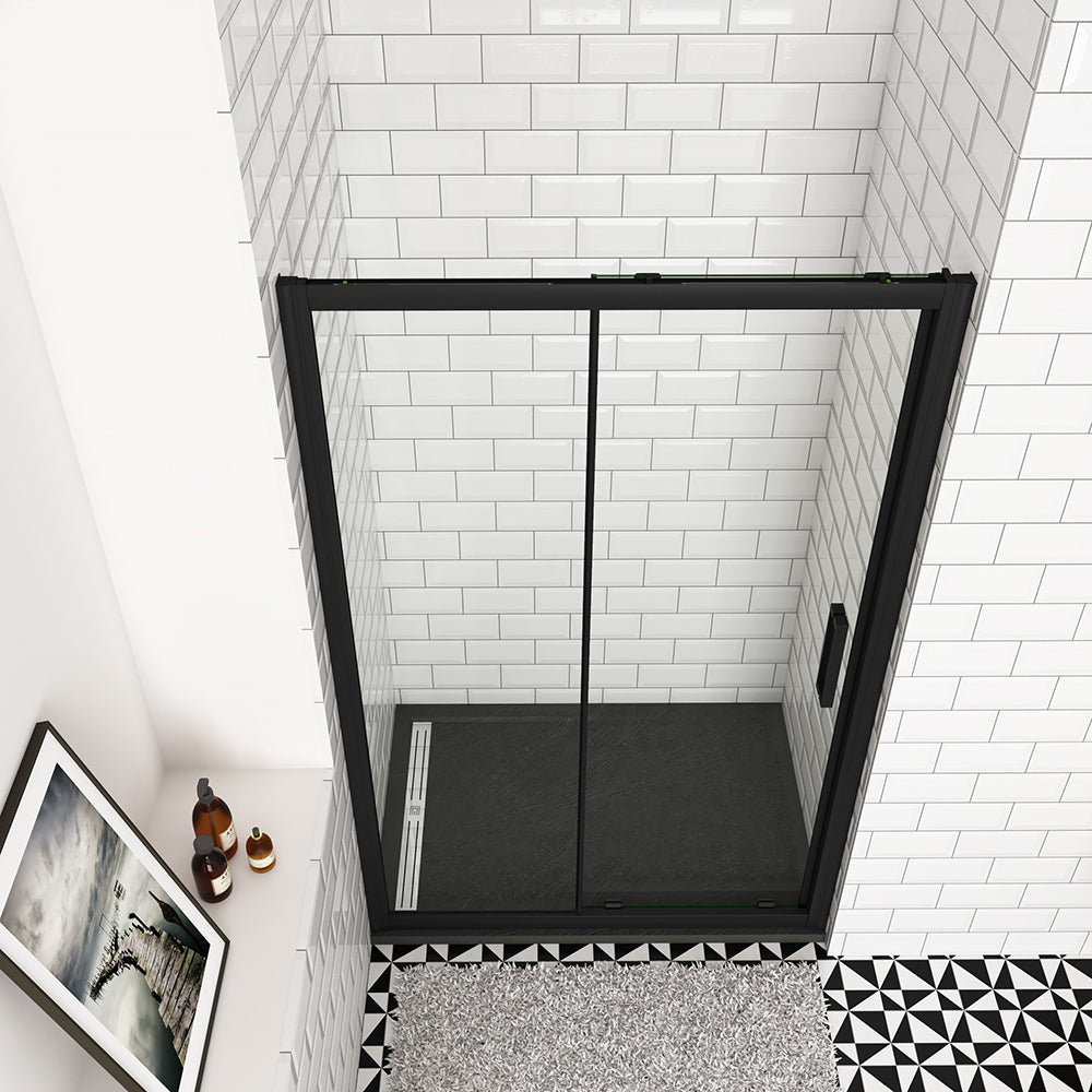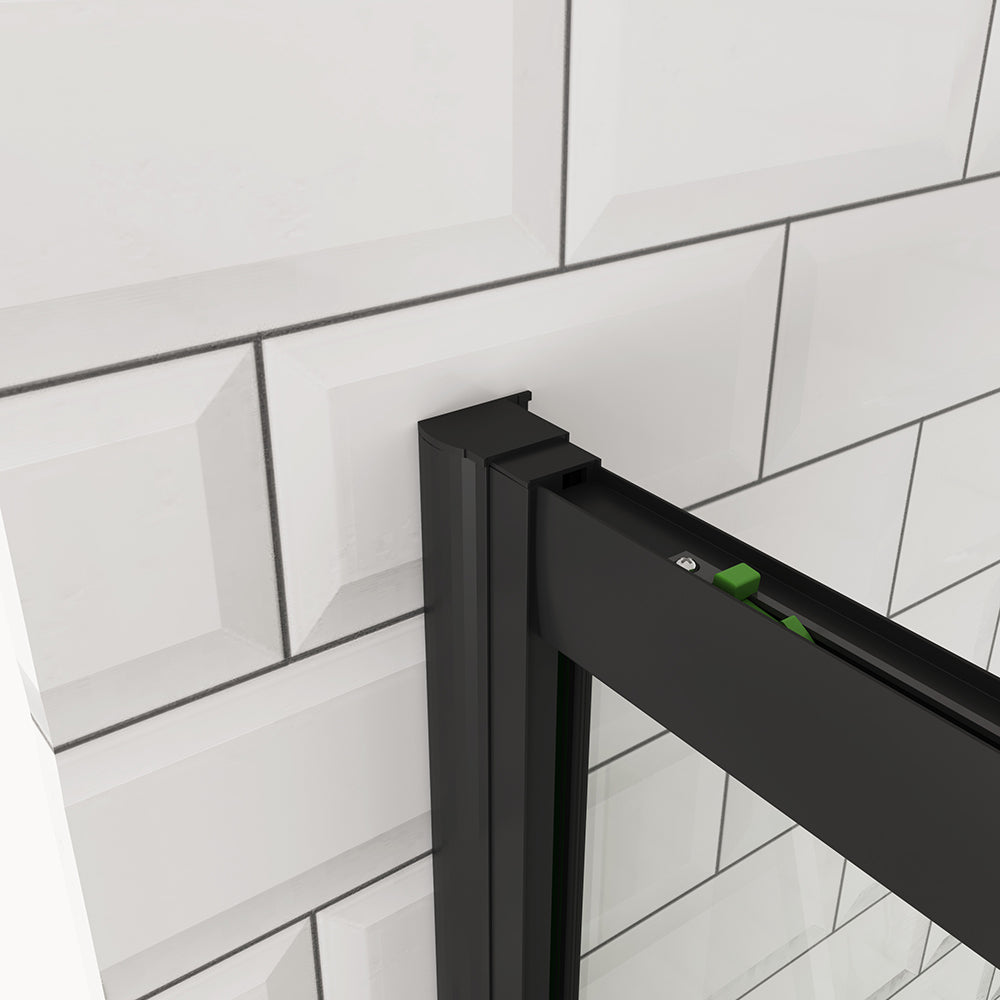 OCEAN porte de douche coulissante 100-160x195cm profilé noir mat en verre anticalcaire avec le système soft-close