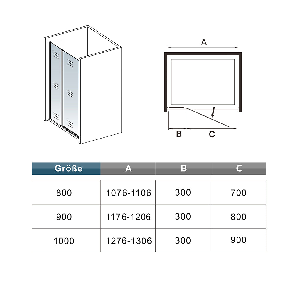 • Type: Porte de douche pivotante,installer en niche montage réversible gauche ou droite.