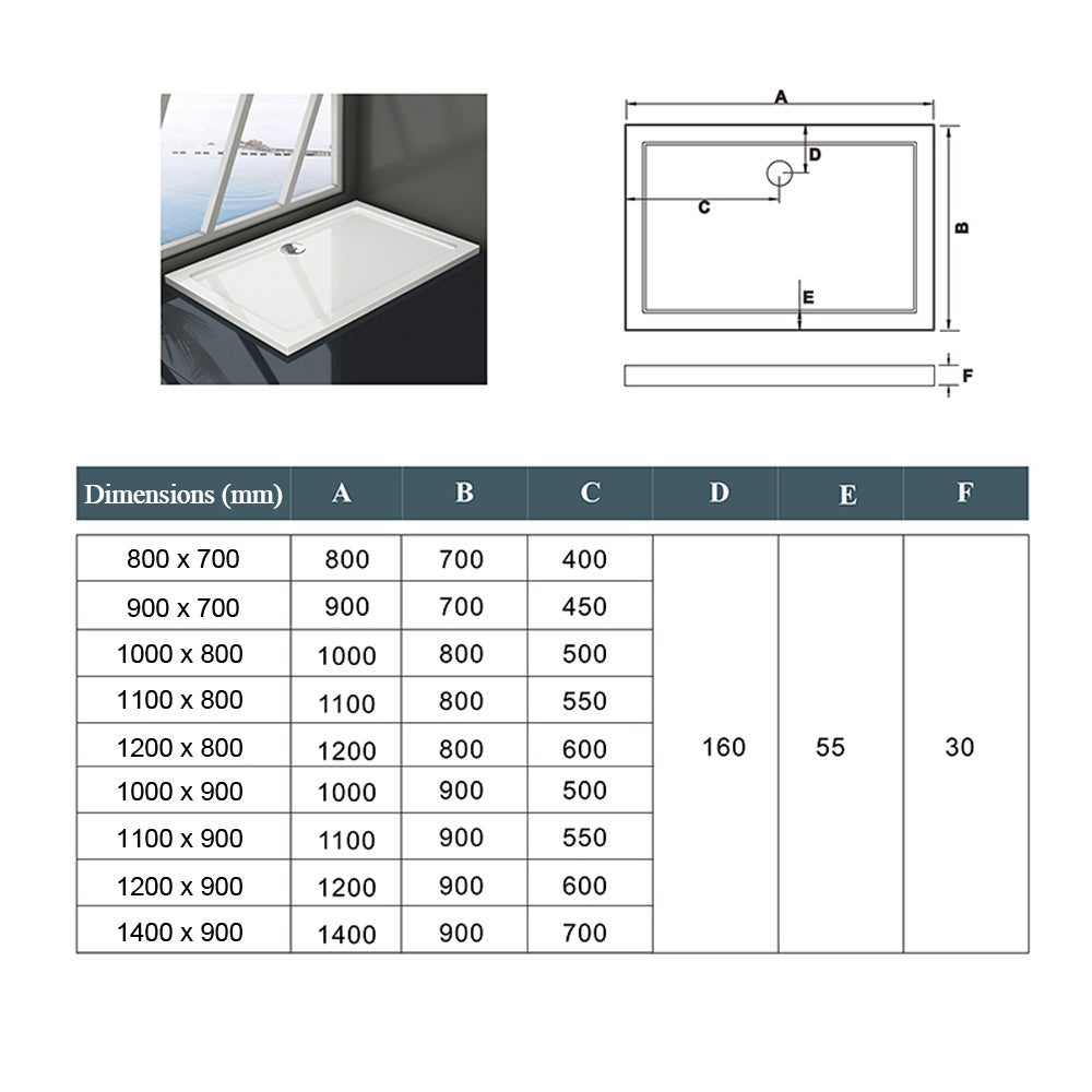 • Dimension: 70-140 x 70-100 cm, hauteur de receveur:3cm,avec une bonde et un tuyau