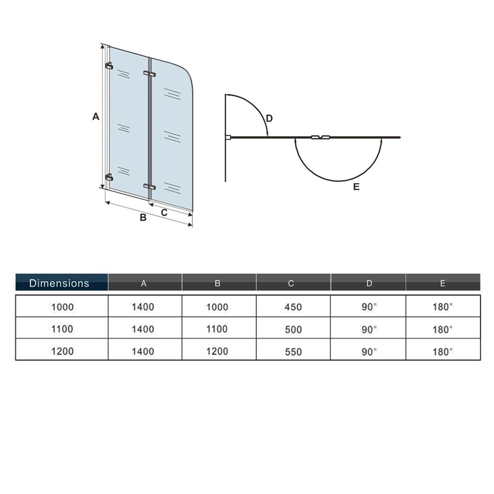• Dimension: 100 / 110 / 120 x140cm ,5mm verre de sécurité haute qualité selon norme EN 12150