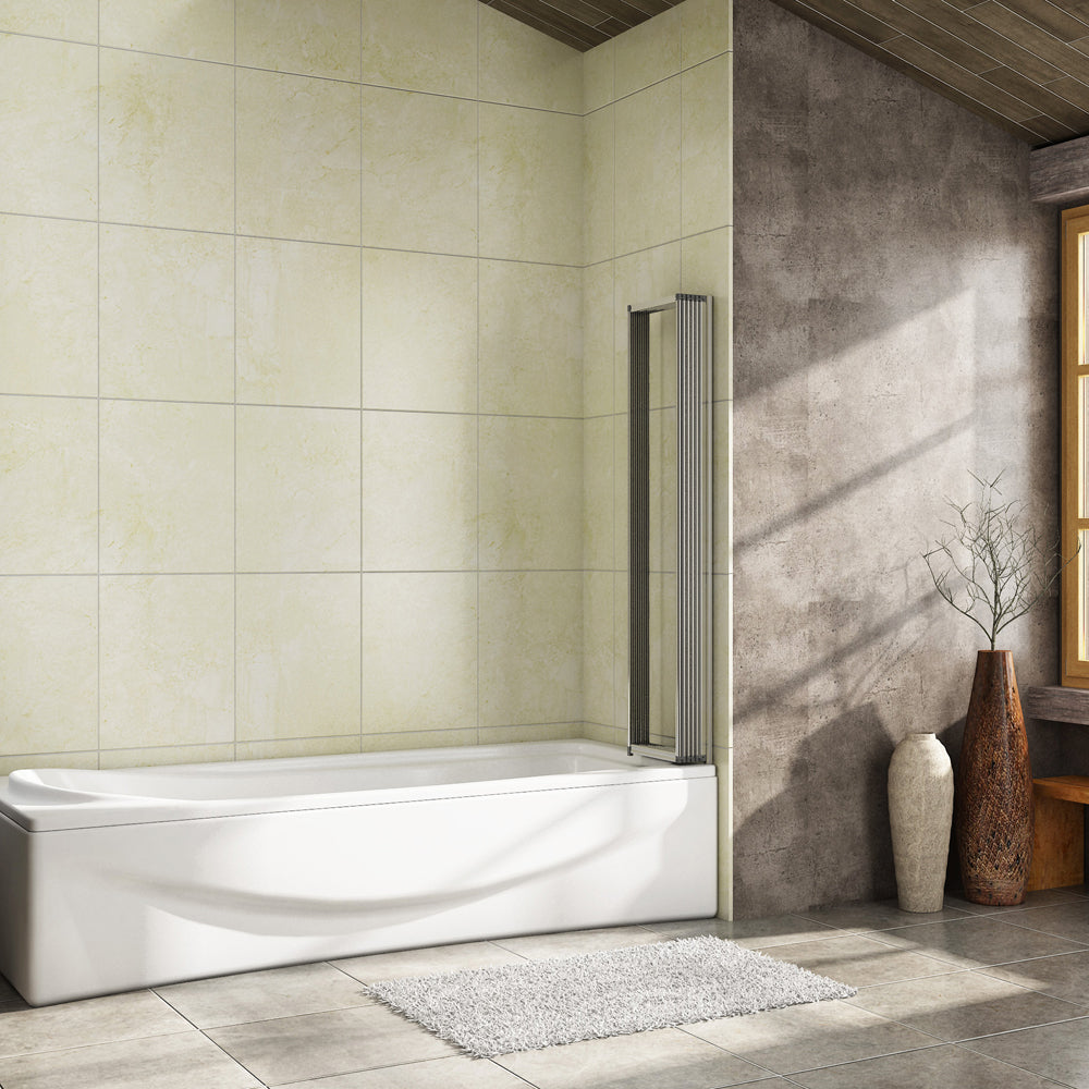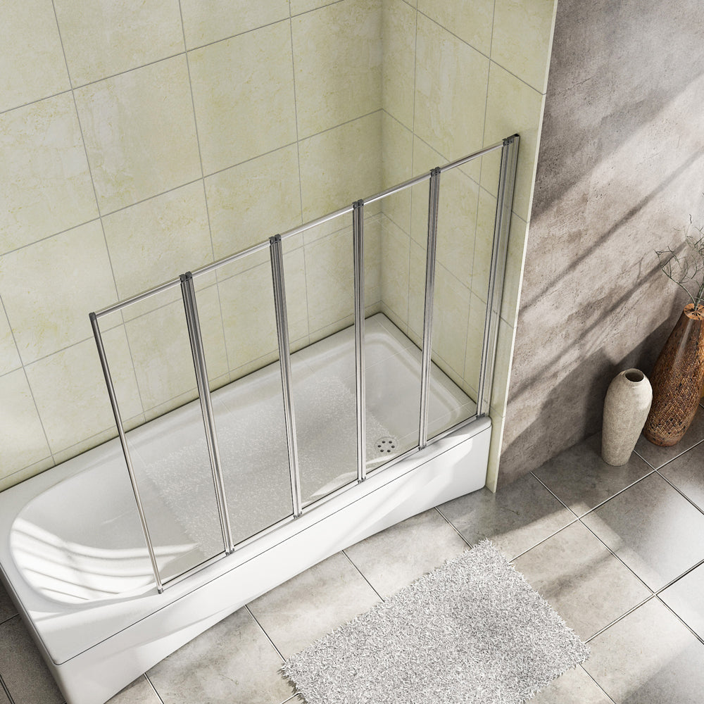 Pare-baignoire 120x140cm 5 volets pivotants pliants Océan écran de baignoire verre
