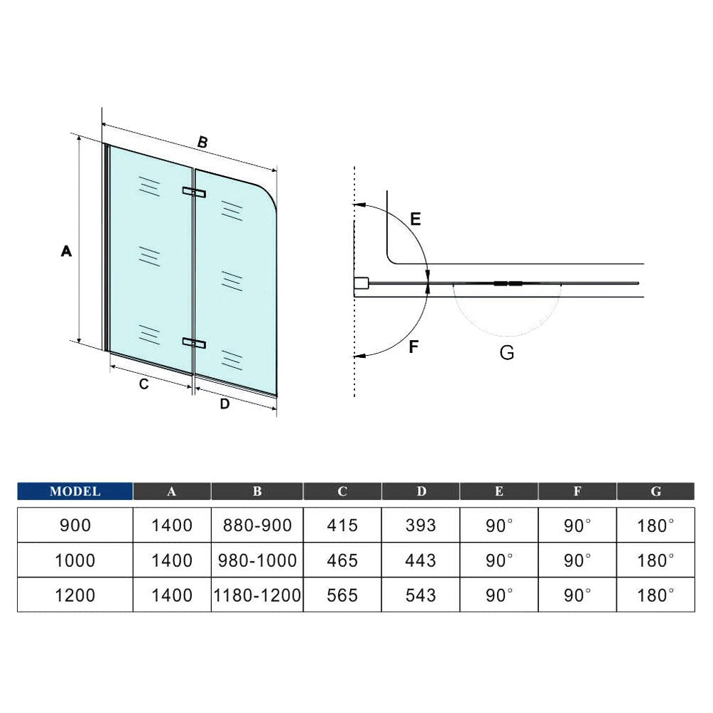Pare-baignoire pivotant et pliant noir | 90/100/120×140cm | Verre anticalcaire – Océan