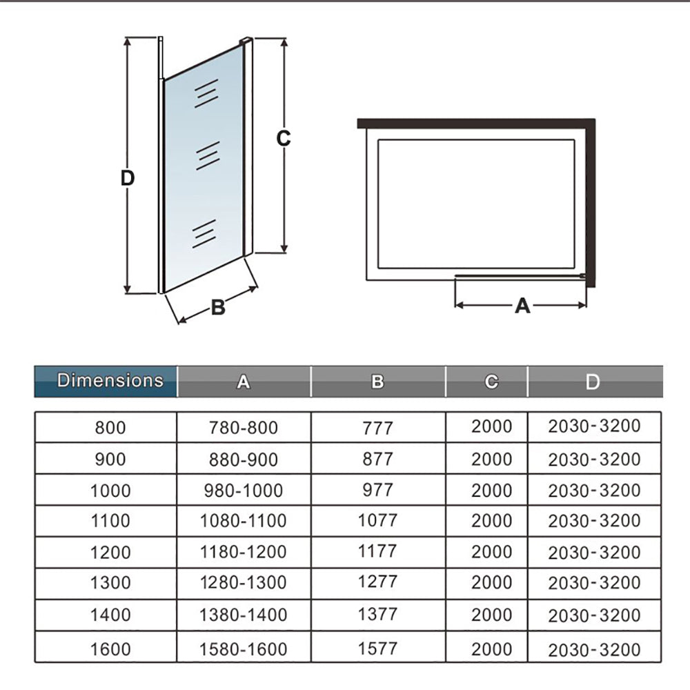• Dimension: 30-160 x 200cm ,8mm verre de sécurité transparent et anticalcaire,EN12150