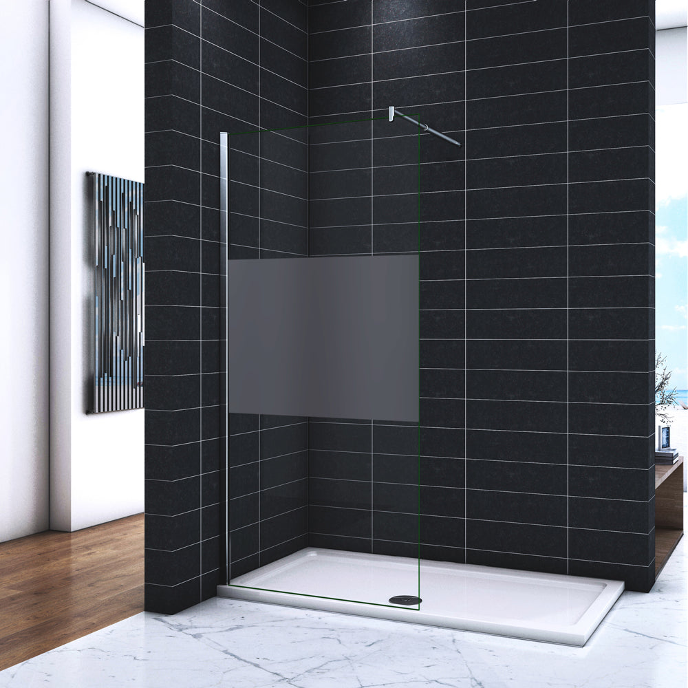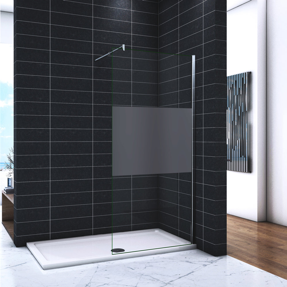 Paroi de douche 90-140 x 200cm en 8mm verre anticalcaire et sablé au milieu livré avec une barre 70-120cm