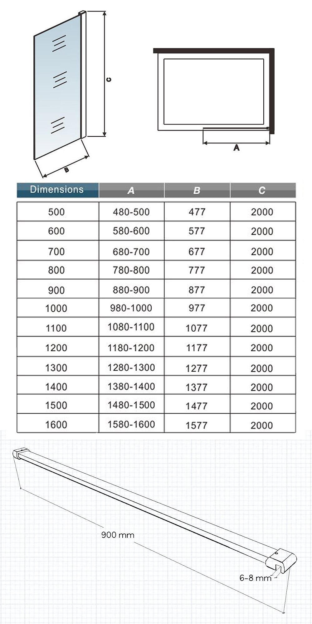 • Livré avec une barre de paroi à mur:90cm(recoupables),sans receveur de douche.