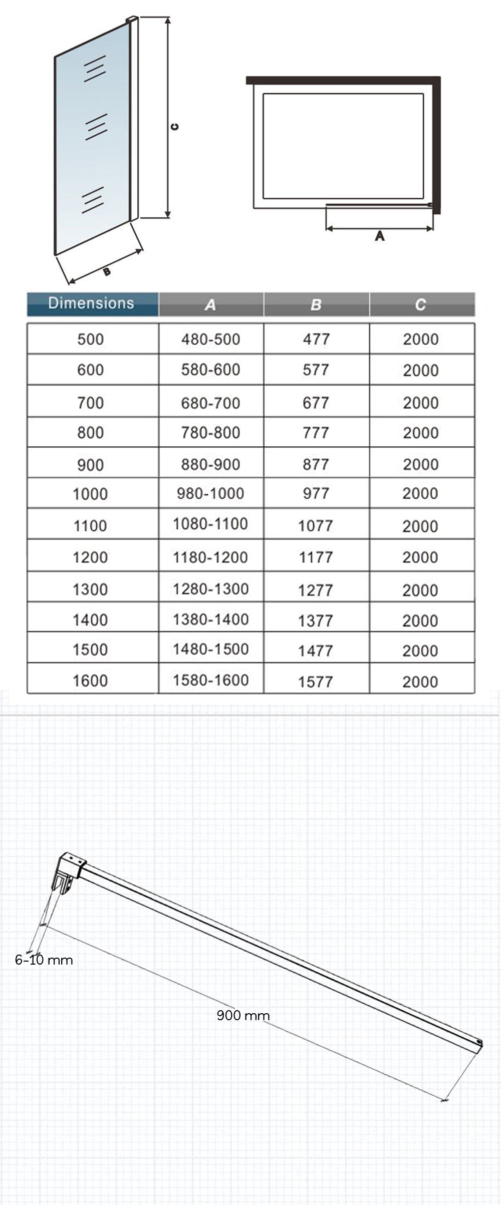 • Type:Paroi de douche à l'italienne ,Dimension: 30-160 x 200cm,8mm verre anti-calcaire et verre de sécurité haute qualité selon norme EN 12150.